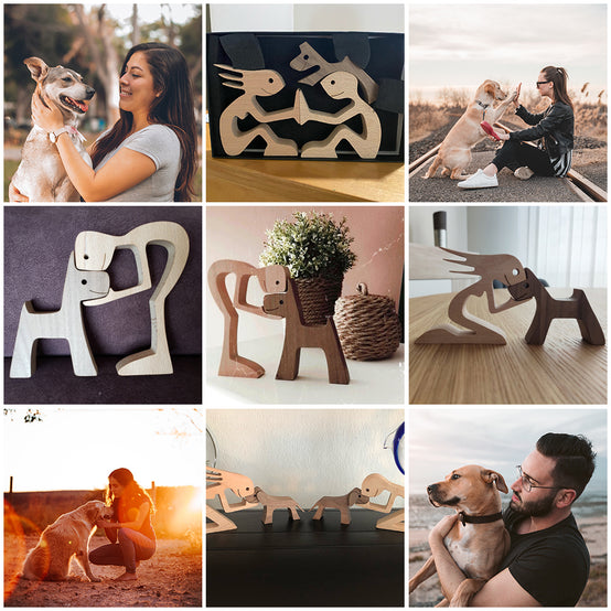 Made by hand-carved natural solid wood, with exquisite wood carving craftsmanship that simply and intuitively shows the feelings between us and the dog.