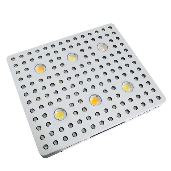 Instead of having dozens of small diodes, COB style LED grow lights typically only have a handful of huge COBs, each with strong lenses to direct the light down into the plant. These are rapidly gaining in popularity and are known for having deep penetration into the plant canopy.