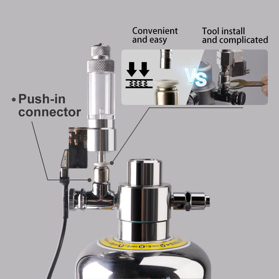 Quick plug connector design is easy to insert and disassemble. Just need to press the collar when replacing raw materials.
