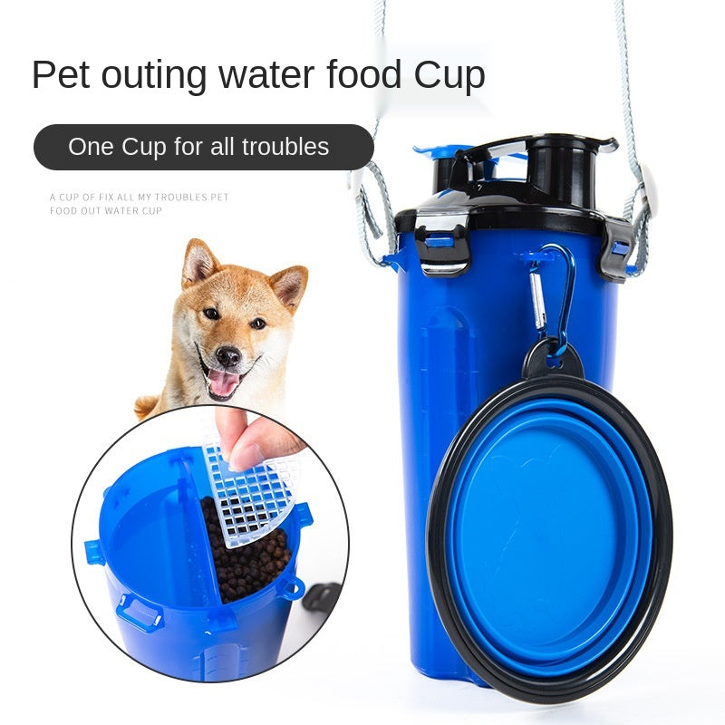 The pet water and food dual-purpose cup effectively solve the problem of drinking and feeding when taking your pet out of the house. It is portable, clean, and hygienic.