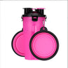 2-in-1 Dog water bottle and dog food storage container with two collapsible dog bowls, and two hooks on the bottle for us to hang the folding bowl.