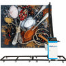 This machine can print on materials that absorb and don't absorb water. It can print directly on metal, putty wall, cement wall, brick wall, paper, glass, ceramic, wood, and so on. With UV light, the pictures drys as soon as it's printed.
