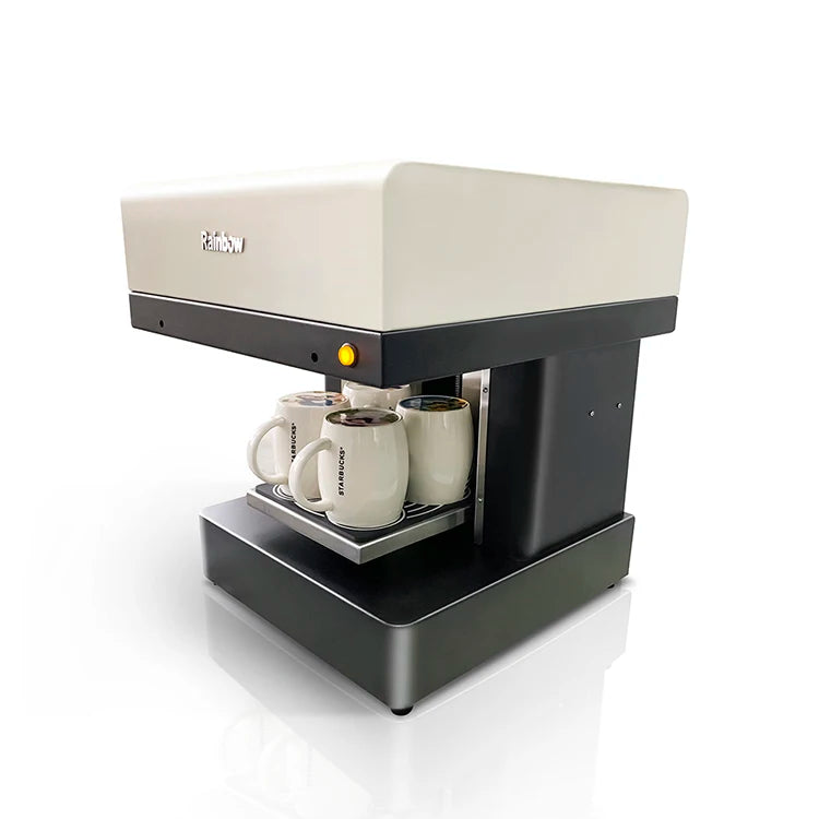 Rainbow RB-04HP cappuccino latte coffee printer with edible ink was manufactured as a homemade printer with economic print head. The coffee beer printer is the upgrade level of 01HP one cup coffee printer machine. The latte art printing machine is very easy operation for even new user. The coffee printer is very popular in restaurant, coffee shops, 4S shops,. etc. The quick printing speed of coffee printing machine can attract more clients which the ink-saving print head can highly save the ink cost.1 liter edible ink can print around 2000 cups coffee.