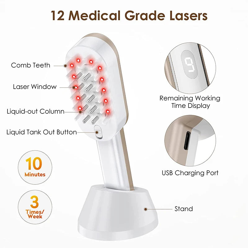 2 in 1 Nutrient Liquid Hair Regrowth Brush Electric Stimulate Scalp Massager Infrared Electric Laser Hair Comb