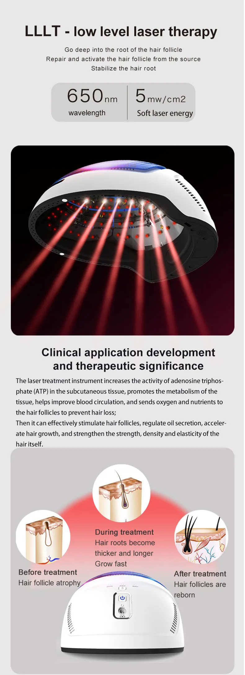 Suitable for dermatology clinic, hair loss therapy center, beauty salon, personal home use.