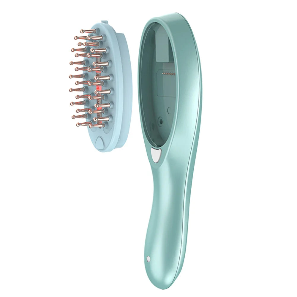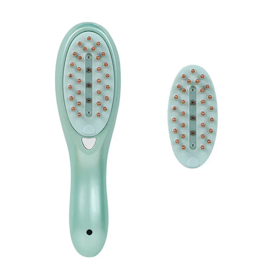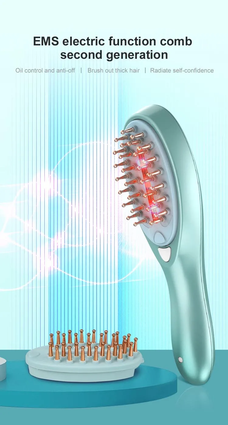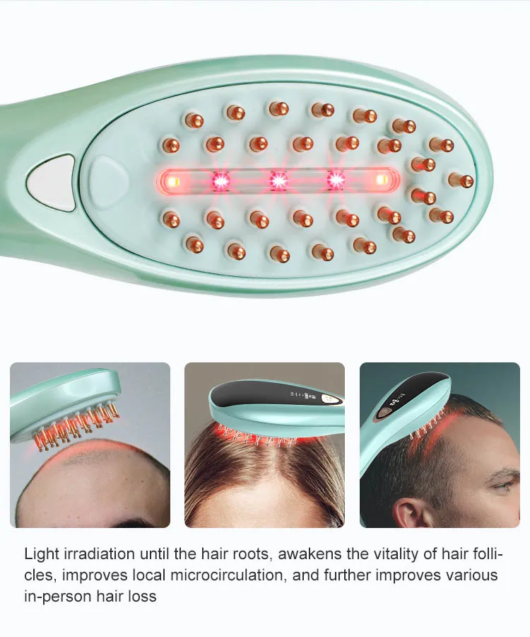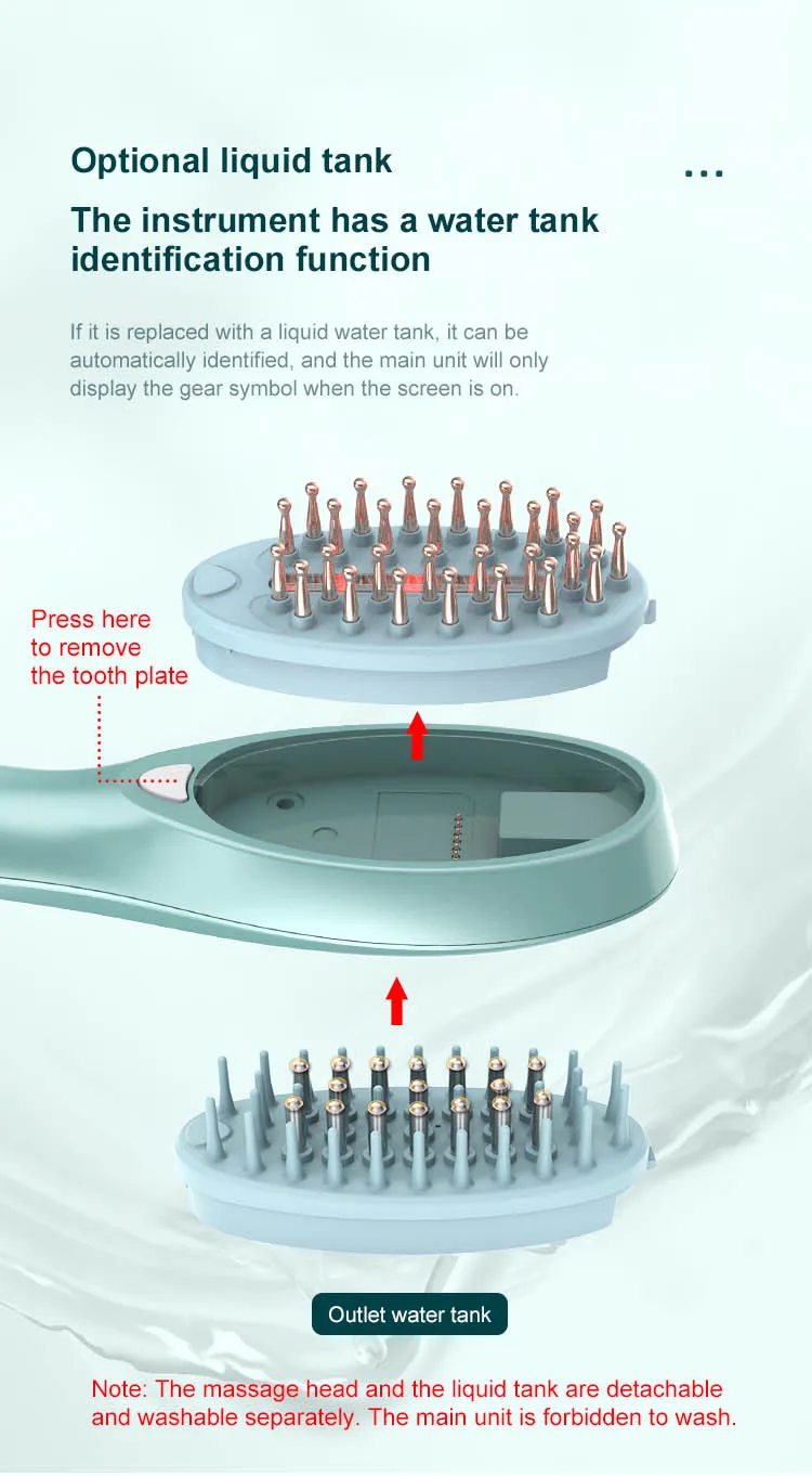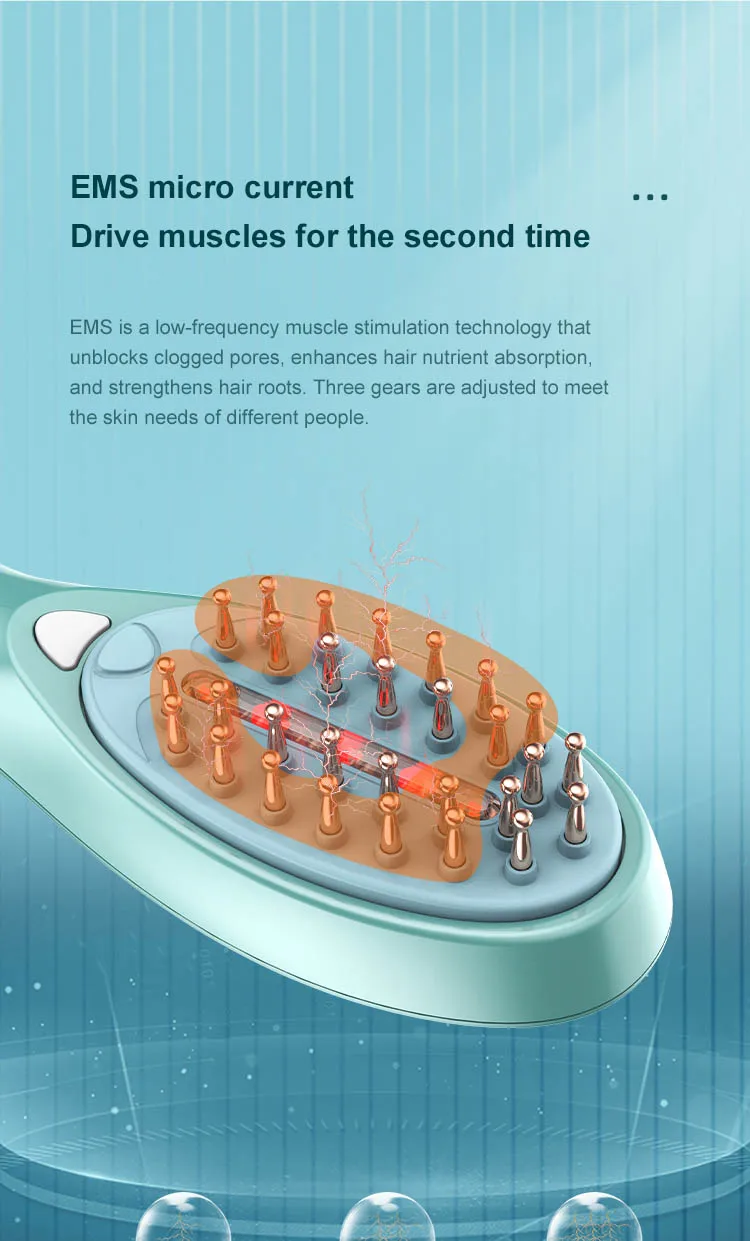 · Easy & Safe for Hair Growth The hair growth comb and liquid is designed for people suffering from hair loss. The liquid can be effectively delivered during massaging. This is a simple, easy & safe treatment to stimulate hair follicles, encourage hair regrowth and provide healthier and fuller looking hair to both men and women. · Led Red Light RF massage to Stimulate Hair Growth The LED red light is a safe, effective, and natural treatment option for hair loss. It is absorbed by the hair follicles and increases circulation, making sure that the growing hair is getting the nutrients it needs to be healthy. It increases hair count, hair density, and hair thickness for men and women alike. · EMS Vibration Massage with 3 Intensity Levels The vibrating massage can effectively stimulate blood circulation and activate hair follicles. It promotes the absorption of hair growth serum in the scalp. It can also help you relieve stress and pressure, giving more health care to the hair and scalp. · WHAT THE POWER Of liquid The hair growth serum can be easily added to the liquid storage box of the comb. By pressing the Liquid-out column, it can be easily flow out, nourishing the hair and scalp, helping to strength the roots, awaken the hair and reduce hair loss. · Detachable Independent Liquid Storage Box The liquid storage box of the comb is very convenient for adding liquid and cleaning. With simple operation and portable size, the hair growth kit is designed for home use and travel friendly.