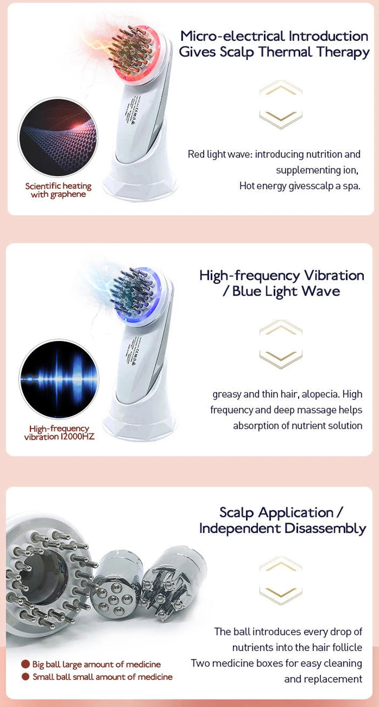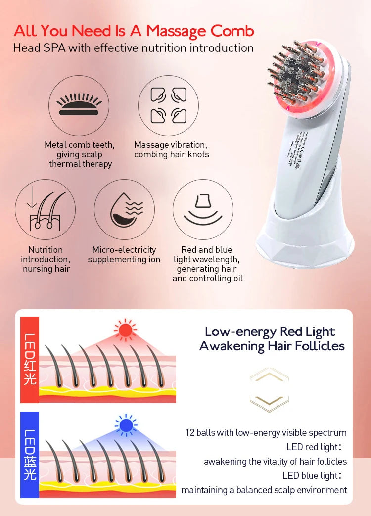 (2) High frequency vibration. It is 12000Hz Frequency Of Vibration. It promote hair follicle vitality, accelerate cuculation, and promote hair growth.