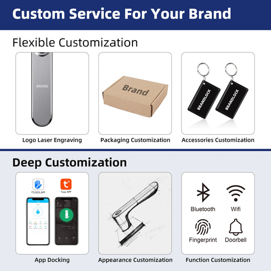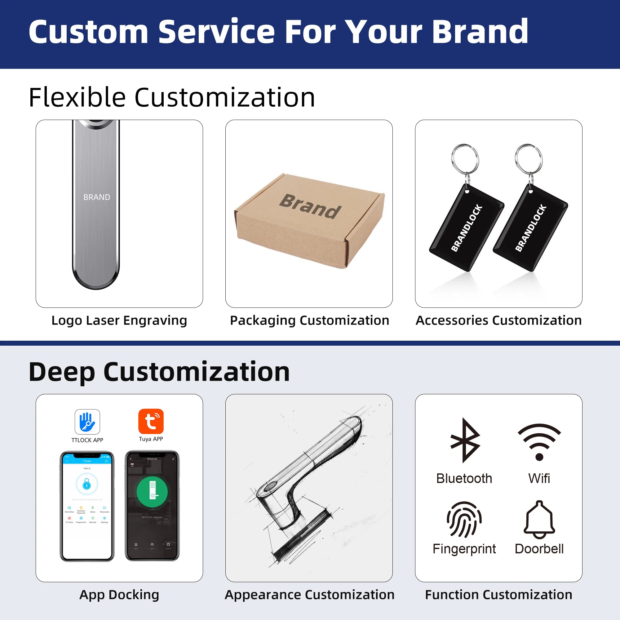 1. 6 ways to unlock: WiFi APP Access(optional), BLE APP Access, Fingerprint Unlock, Card Unlock, PIN Code Unlock, Mechanical Key Unlock;