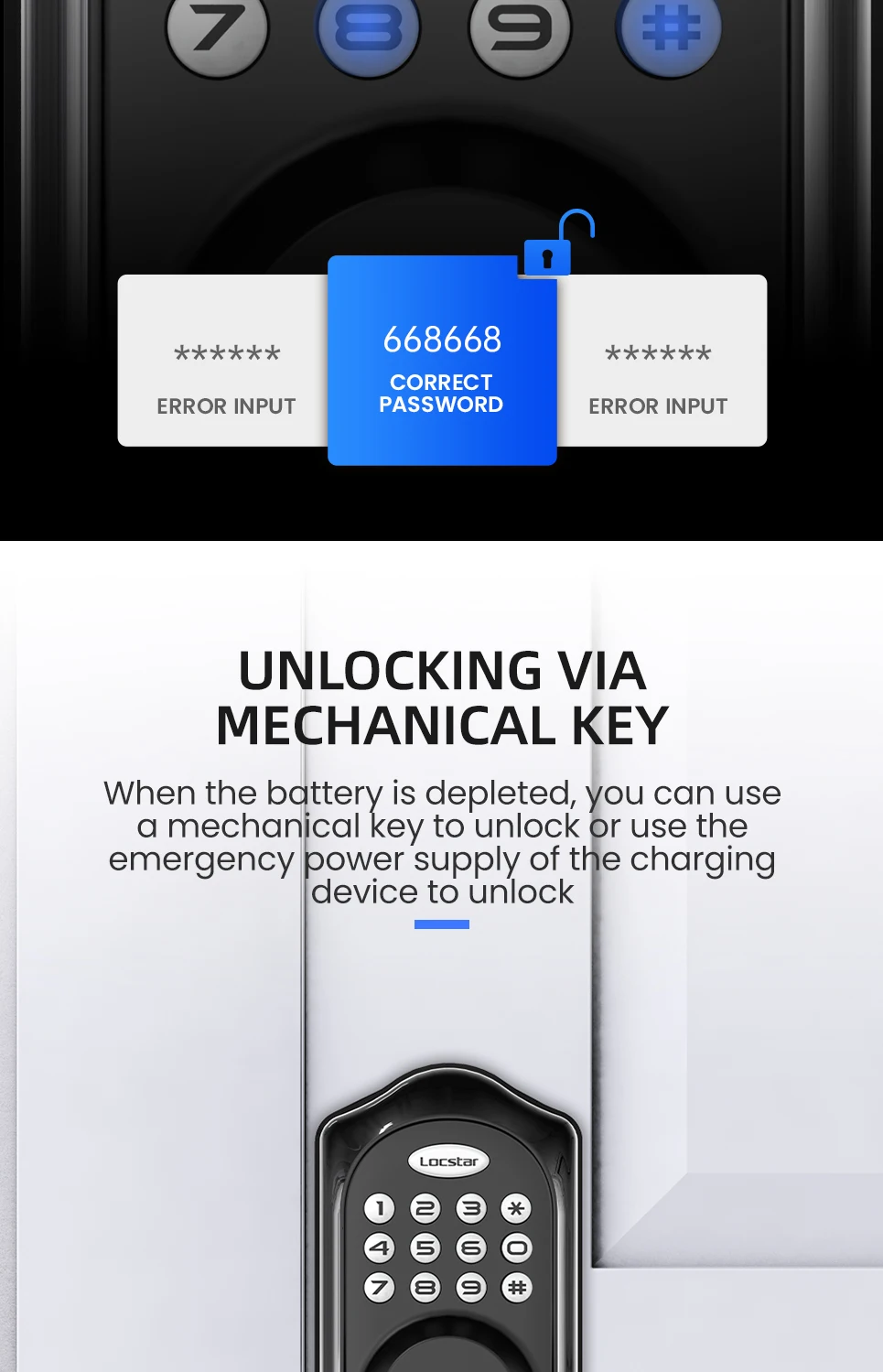 1. Access by APP, Pass code, Mechanical Key Unlock
