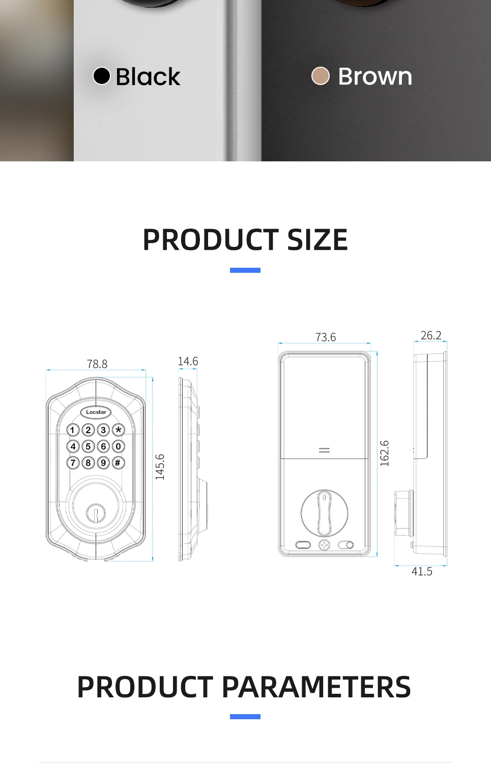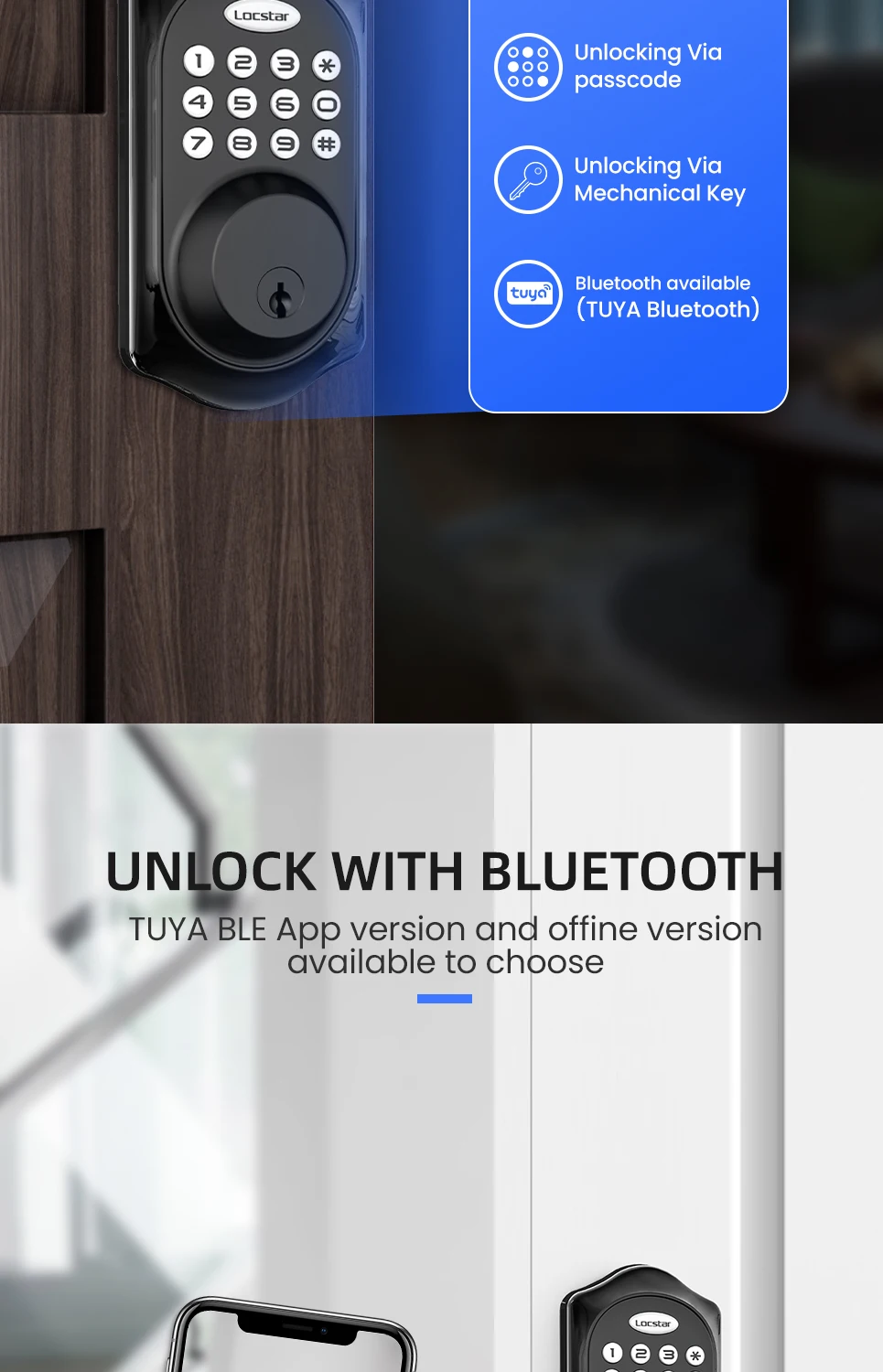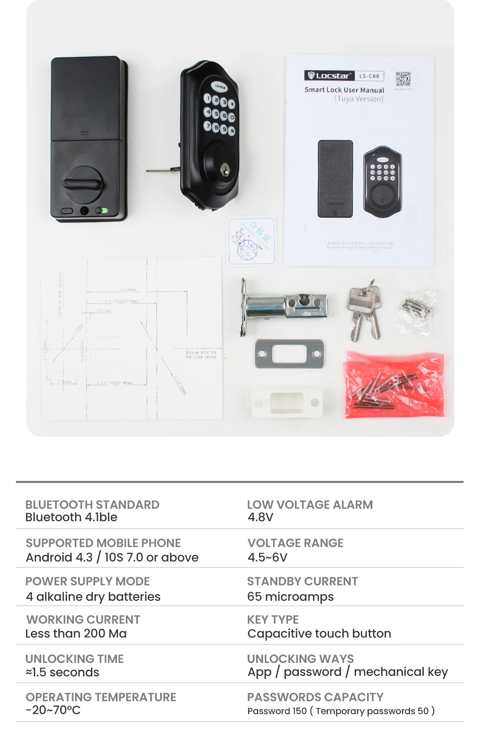 2. TUYA BLE App version and oine version available to choose. 3. Strong and secure Aluminum alloy lock panel, Anti-corrosion and study. 4. Emergency powersupply in case of lost power; 5. We can customize production according to your requirements,OEM/ODM; |