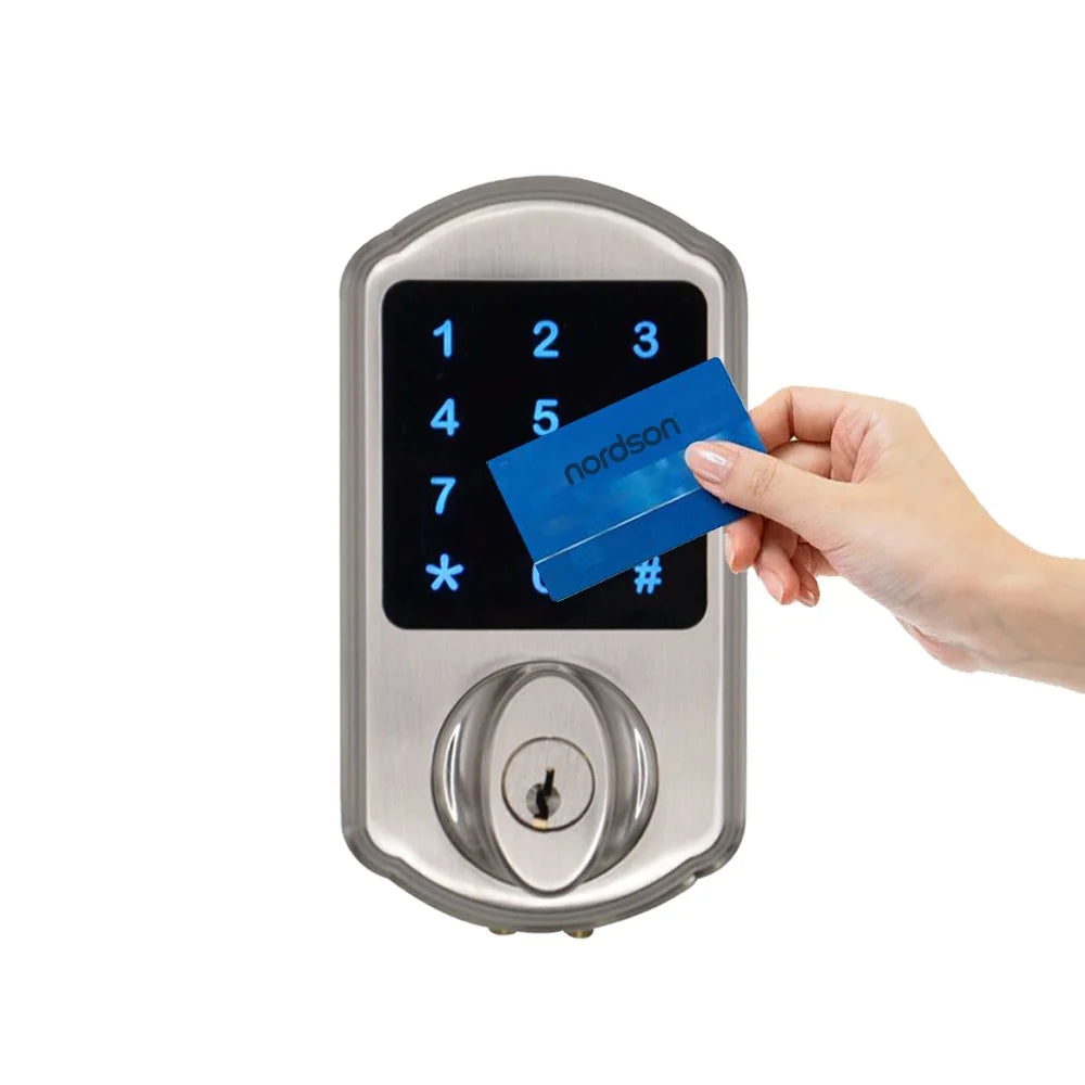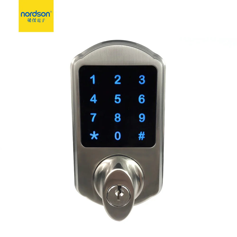 Nordson LED touch screen standalone card reader electric smart digital lock with mechanical key for wooden metal door