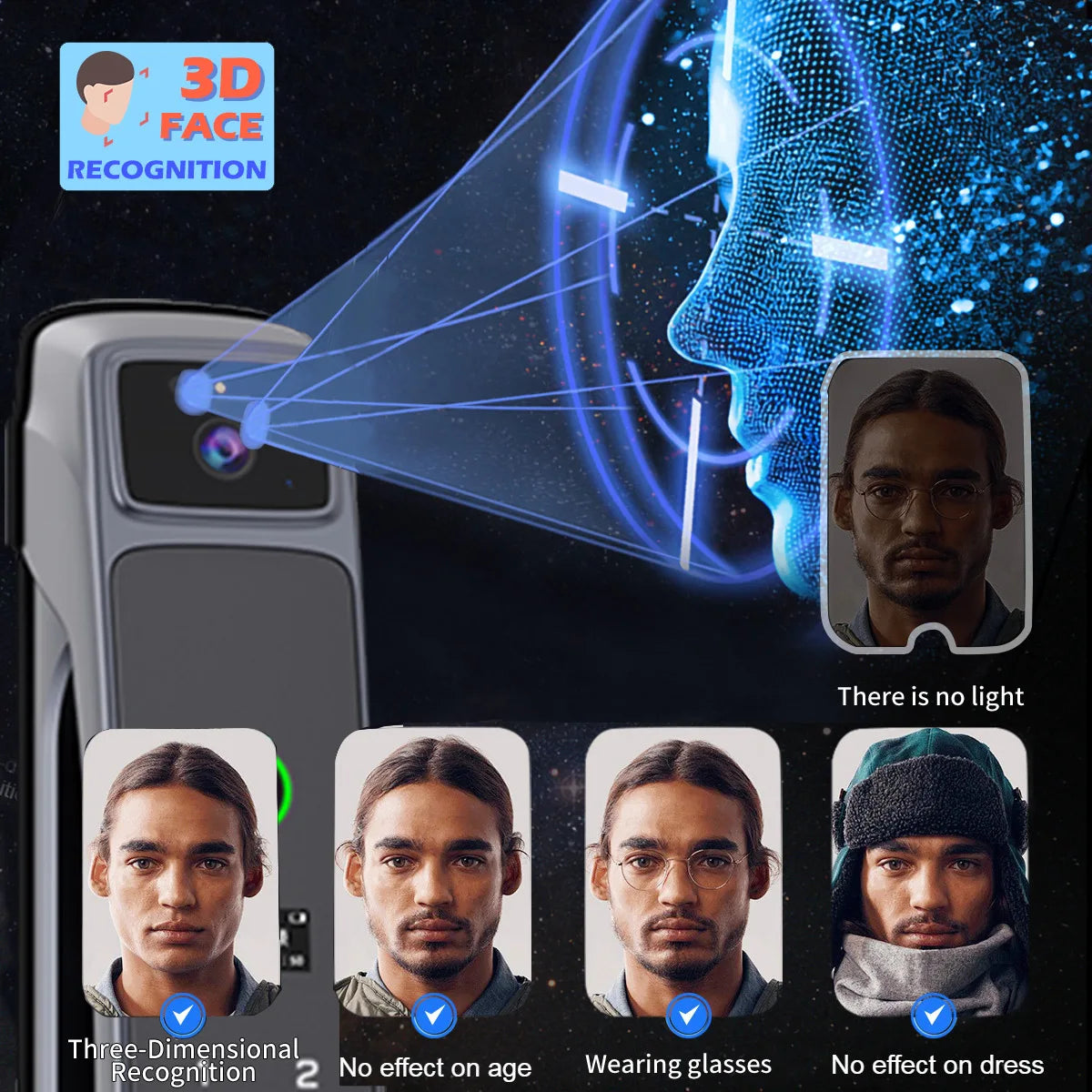 2..New Face Recognition Function:Don't need your hand, when you go back, just face to the lock, it will automatic recognition and