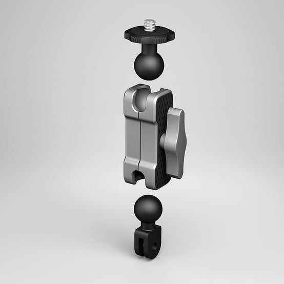 Features: 1.High-strength aluminum alloyand plastic materials and texture surface design, strong stability 2.Comes with 1/4 inch adapter and Gopro adapter, and compatible with most of action cameras 3.Lightweight design, allows to mount suction cup, bicycle bar mount, motorbike helmat holder or other accessories. 4.360 degree adjustment, free choice of shooting Angle, one step lock, simple operation Model No.: ST-1110472 Material: aluminum alloy, Nylon, silicone Color: silver & black Size: 58*20*33mm (without assembly parts), 115*20*33mm ( with assembly parts) Net weight: 60g Package weight: 124g Package size: 126×84×33.5mm In the box: 1. Accessory mount *1 2. 1/4 inch adapter steering ball joints*1 3. Gopro adapter female ball joints*1 ( Action camera universal adapter ) 4. Gopro adapter male ball joints*1 5. Cold shoe ball joints*1 6. M5 Screw *1 7. Gopro adapter female clamping screw*1 8. Manual*1 Notes: 1.It is recommended that the device mounted is not more than 500g. 2.It is not recommended for use in high impact sports such as surfing and skiing. This product is only suitable for non-impact activities.