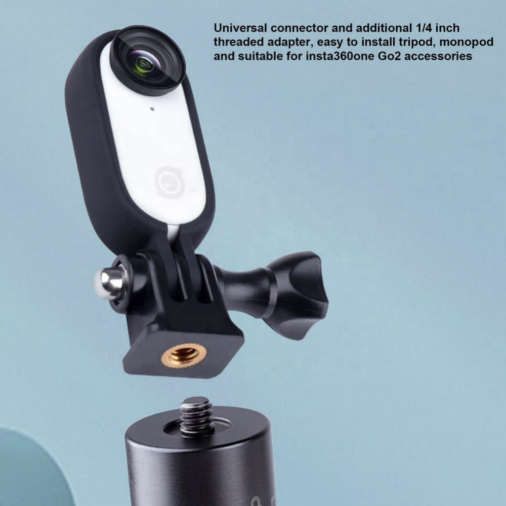 4. Universal connector and additional 1/4 inch threaded adapter, easy to install tripod, monopod and suitable for insta360one Go2