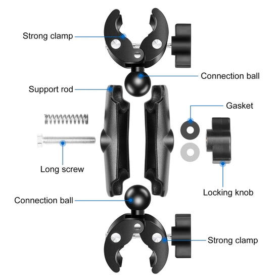 With Good Goods PULUZ Motorcycle Dualheads Crab Clamp Action Camera Handlebar Fixed Mount