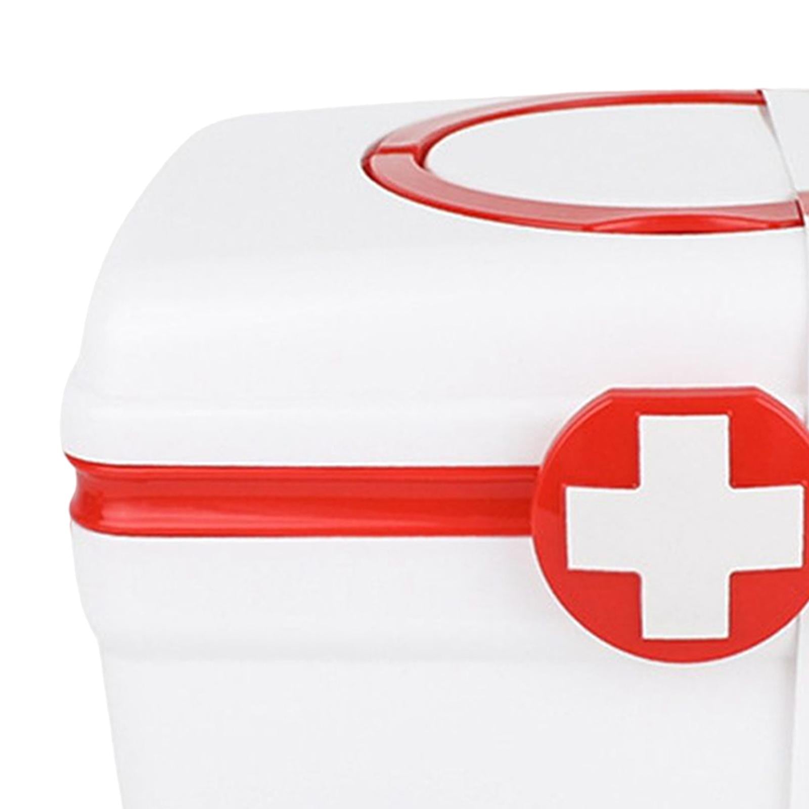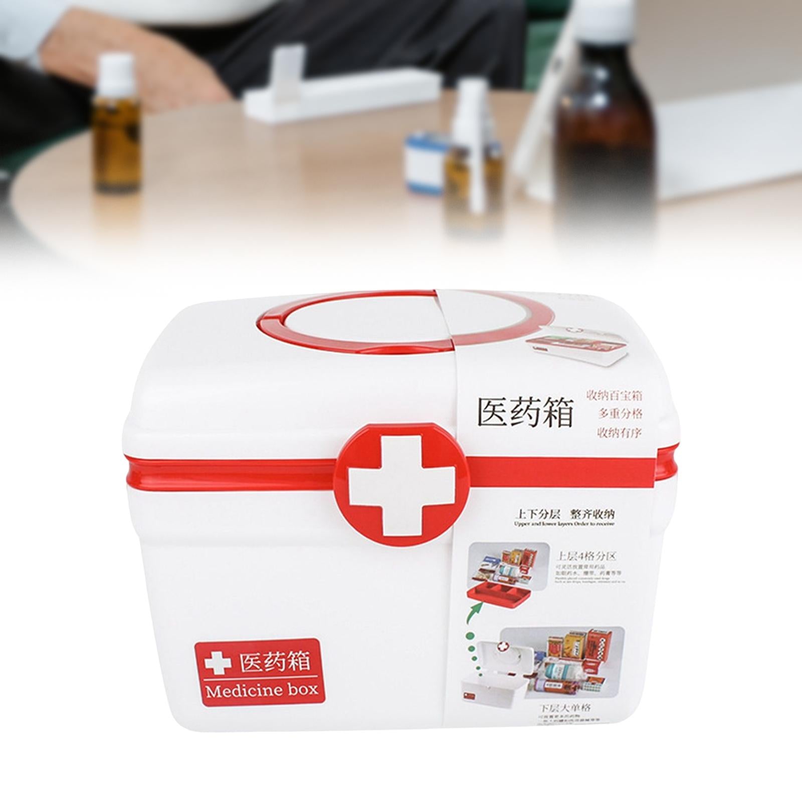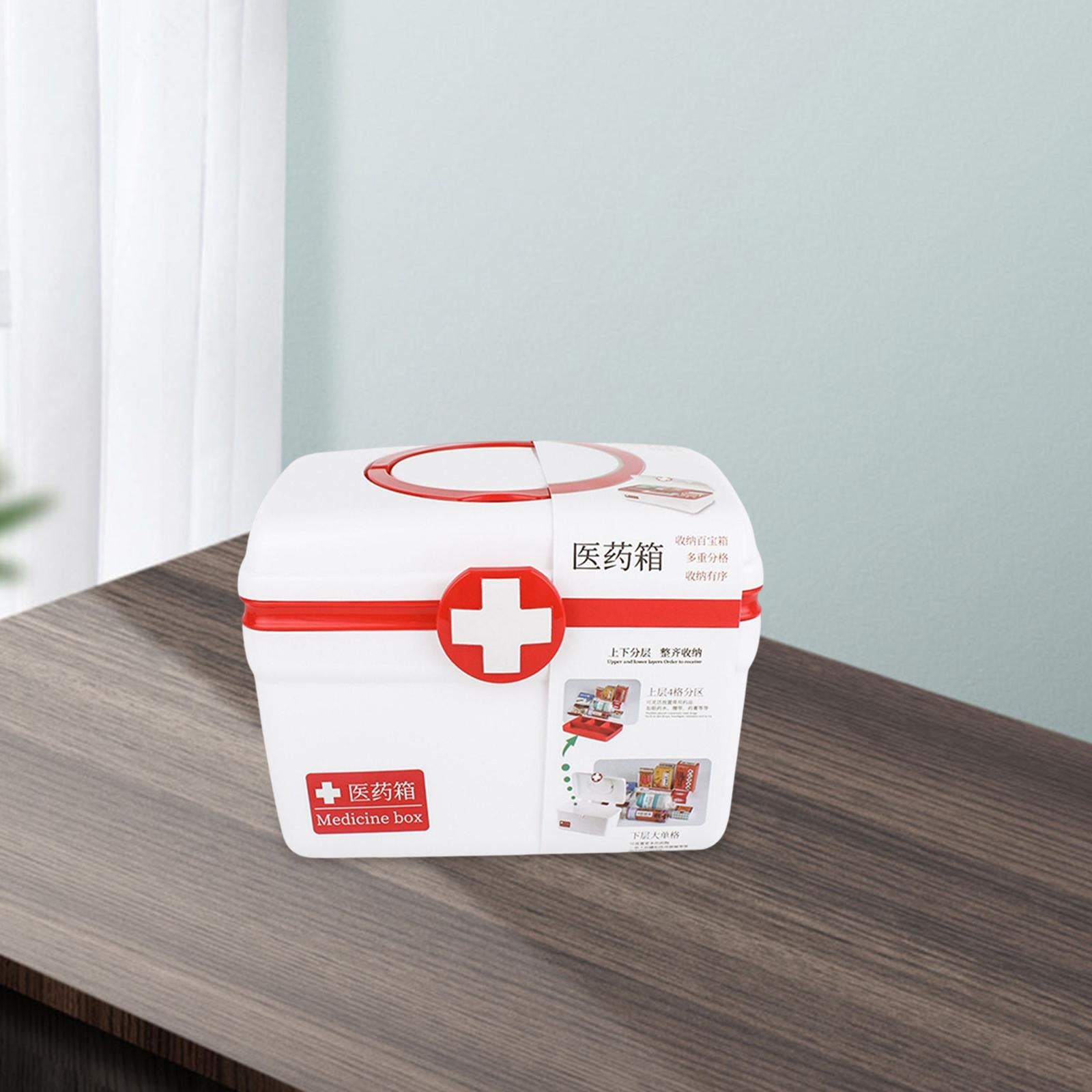 2 Tiers Medical Box First Aid Box Case Organizer for Hiking Office Sports Small Red