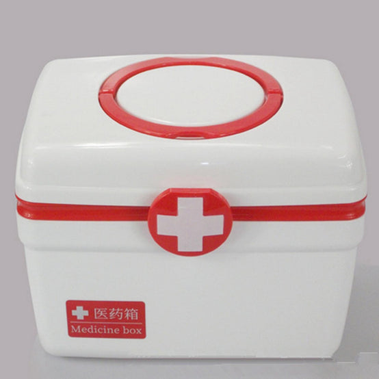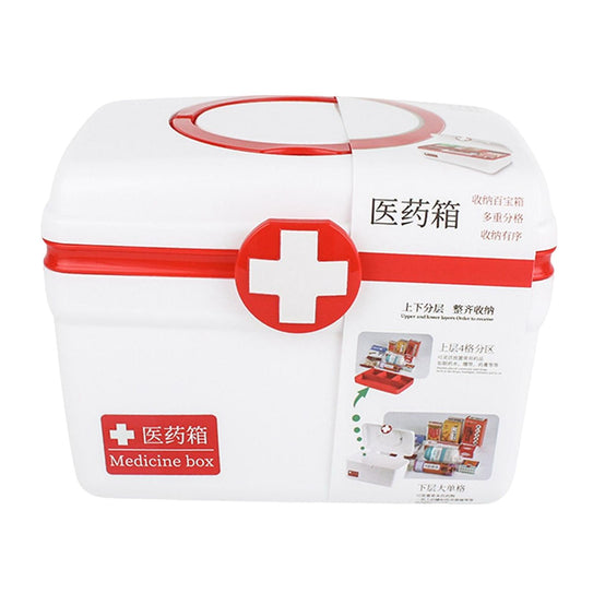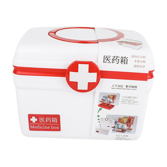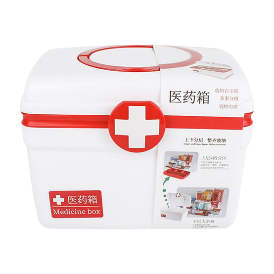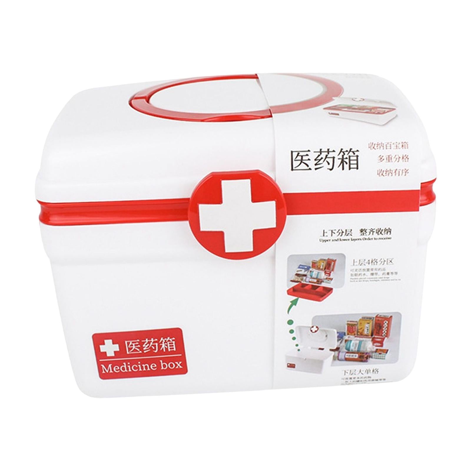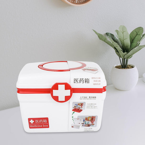 2 Tiers Medical Box First Aid Box Case Organizer for Hiking Office Sports Small Red