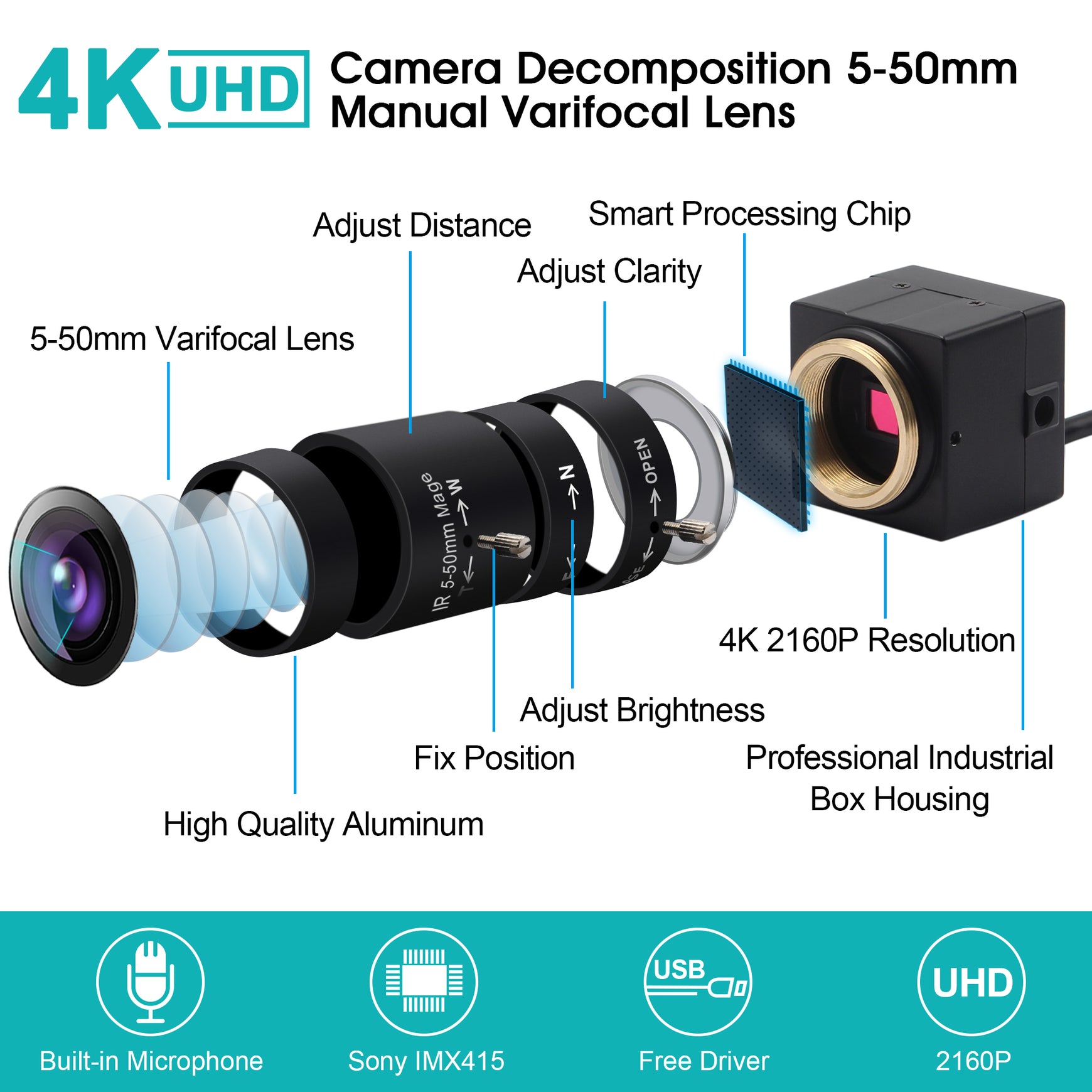 ELP 4K Camera IMX415 sensor 5-50mm varifocal 10X optical zoom webcam, Action & Sports Camera for Windows Linux Android