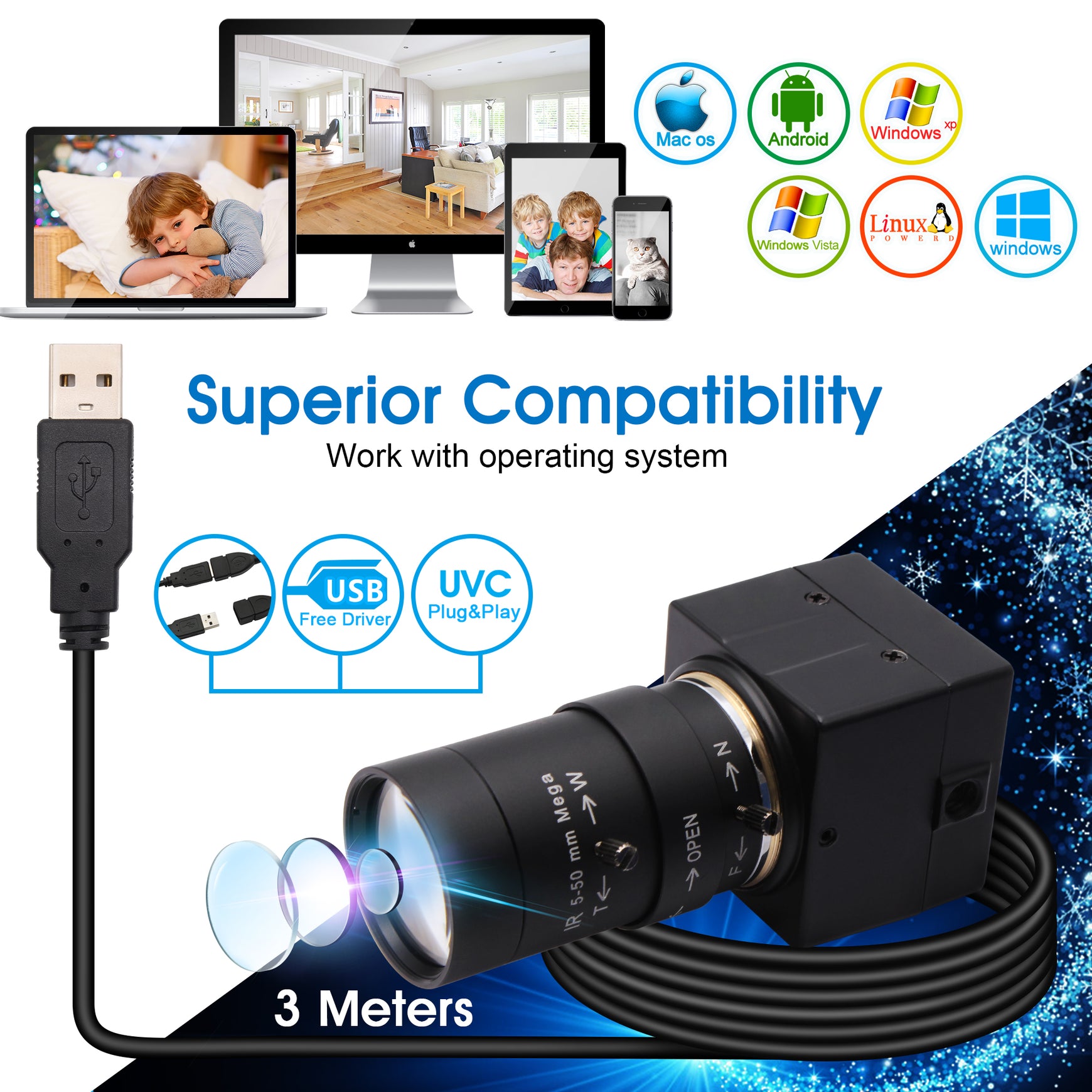 -Plug and Play, Free driver with standard USB connection and 3M cable. Super easy to set up with your PC computer, laptop and desktop.