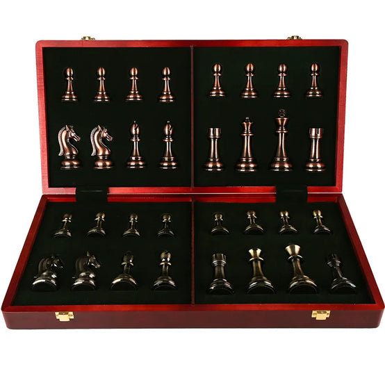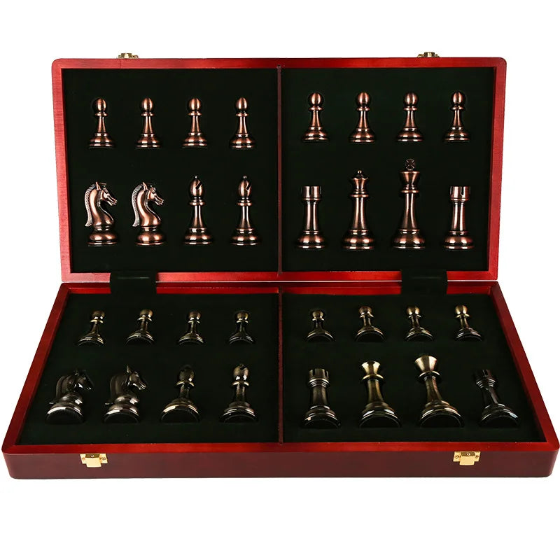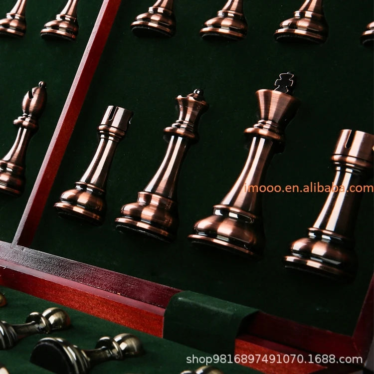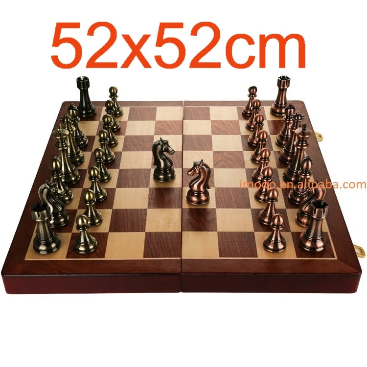 Factory Price 52CM Big Metal Glossy Chess Pieces Solid Wooden Folding Chess Board High Grade Professional Chess Games Set