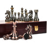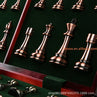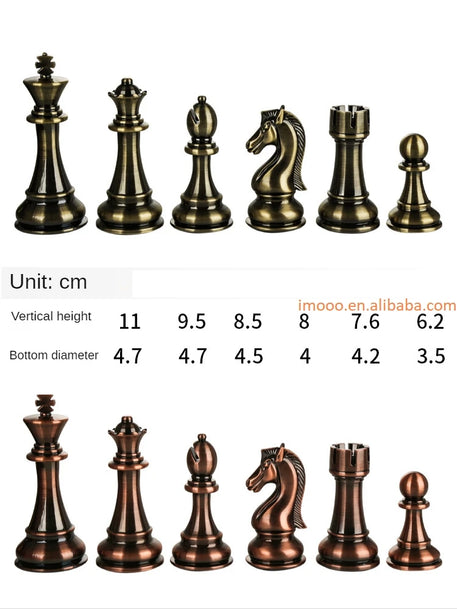 Each chess pieces manufactured from zinc alloy and acrylics shell then plated in antique brass and copper. Elegant and upscale.