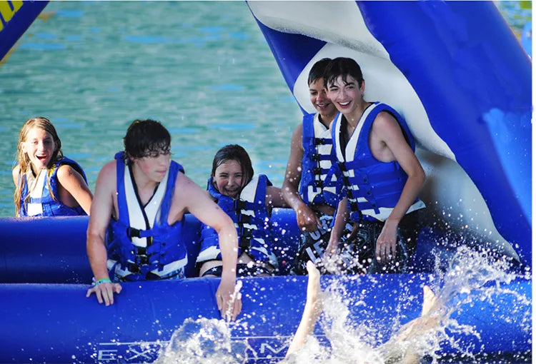 The inflatable aqua park offers exciting challenges and obstacles for all ages. So whether it’s the parents against the kids, teams battling for the title or everyone just jumping, sliding, climbing and bouncing their way around the aqua park, you can be sure you will have a fun filled experience.