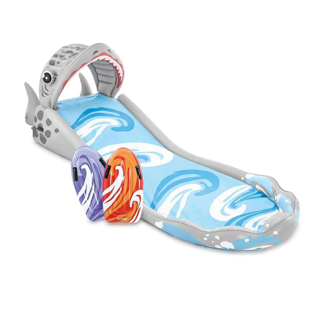 Intex 57159 SURF'N SLIDE Fun Shark Design Water Play Sports Inflatable Water Slide With 2 Surf Riders