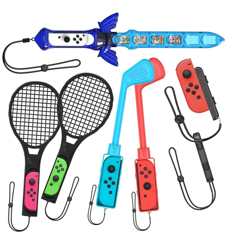 Sport Kits For Nintendo Switch 9 in 1 Sports Set Tennis Racket Golf Club Yoga Ring Wristband Gaming Lightsaber Game Accessories