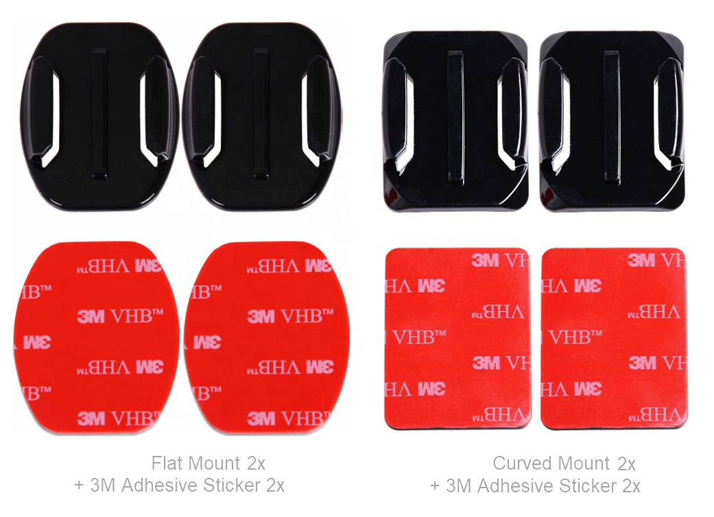 Go Pro Cameras Accessories Mounts 2X Curved & 2X Flat Mounts with 3M Adhesive Sticky PadsTape Mount to Helmet Bike Board Car