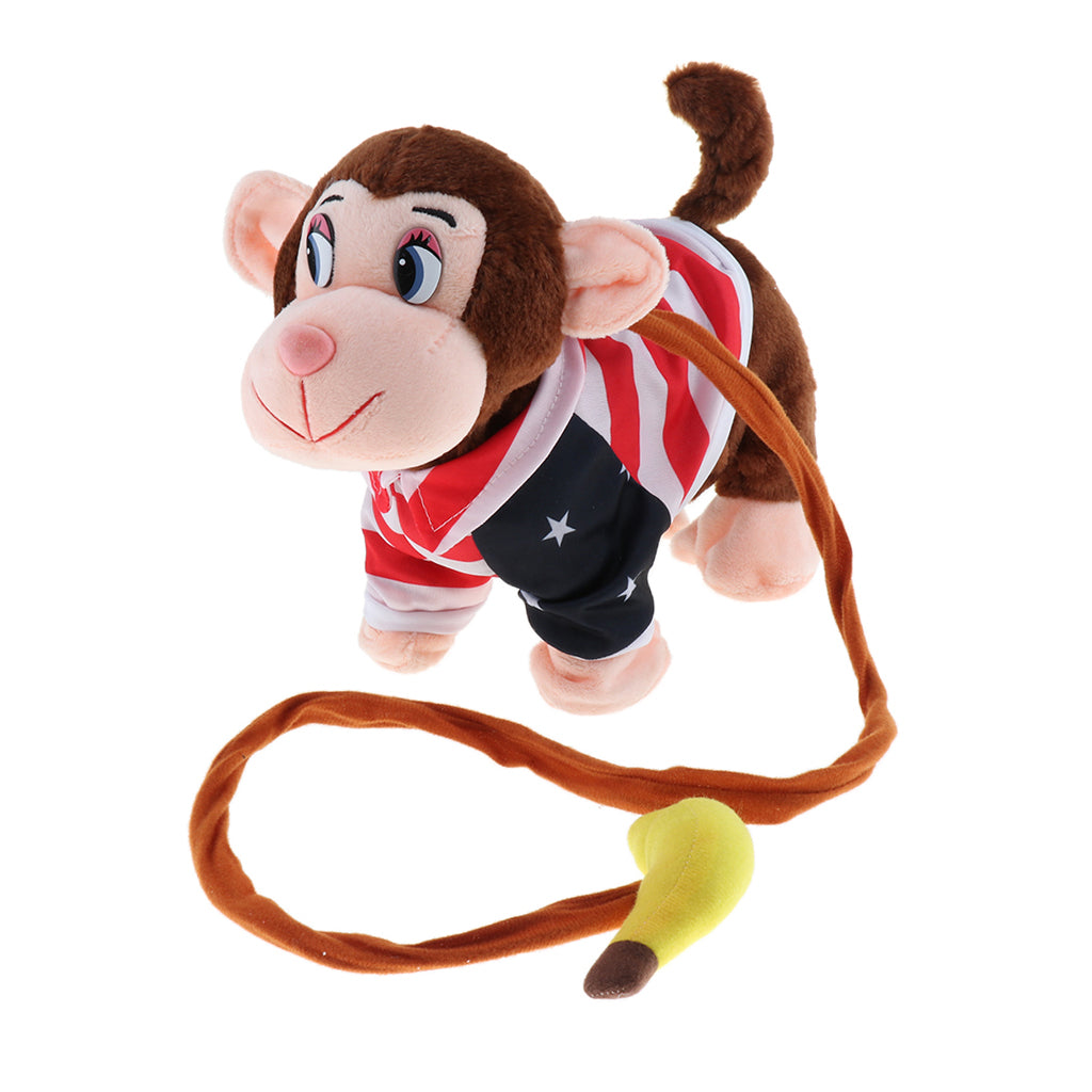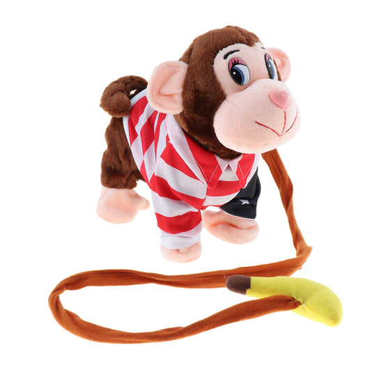 Electric Leash Pets Walk Along Toy Stuffed Plush Monkey for Toddlers Kids, Realistic Dancing & Walking Actions with Music #A