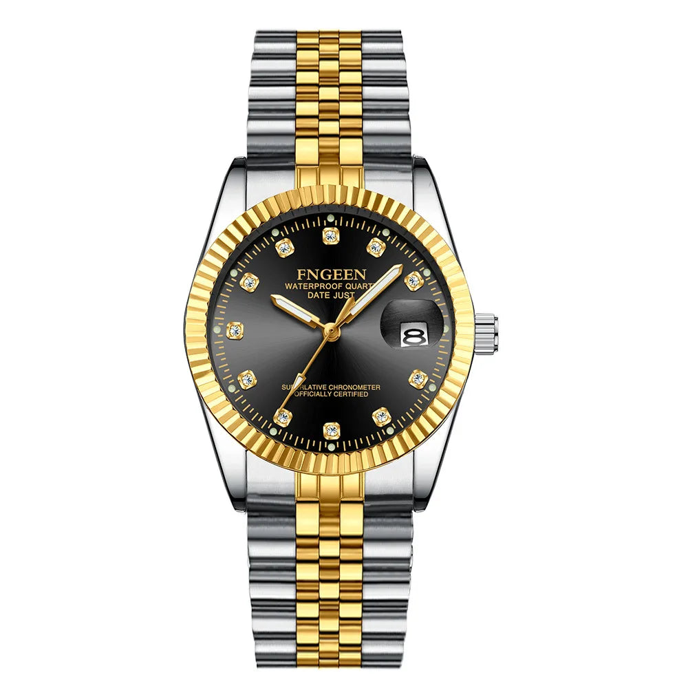 2021 wholesale fashion luxury Stainless steel couples wristwatches waterproof gold quartz Watch for men