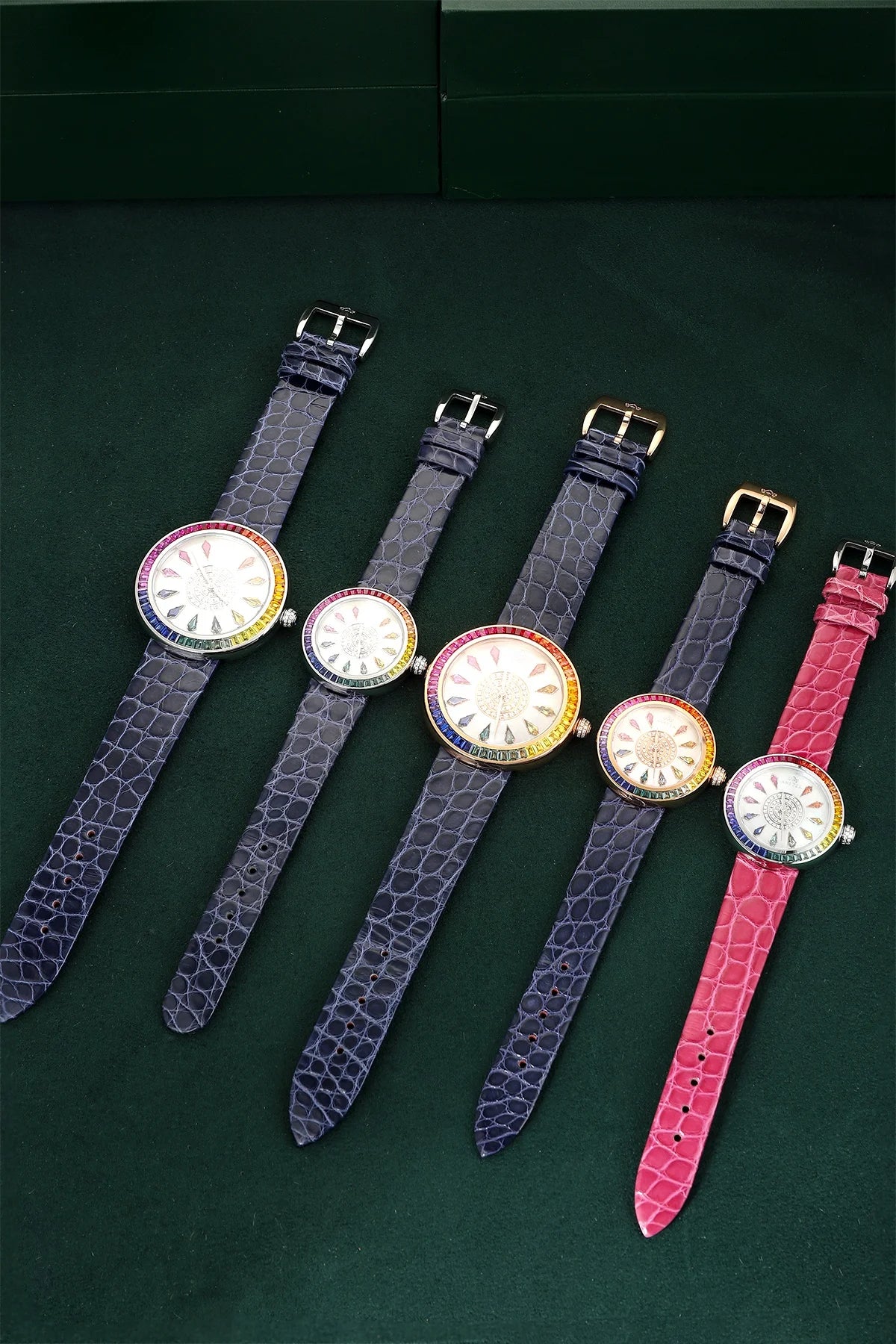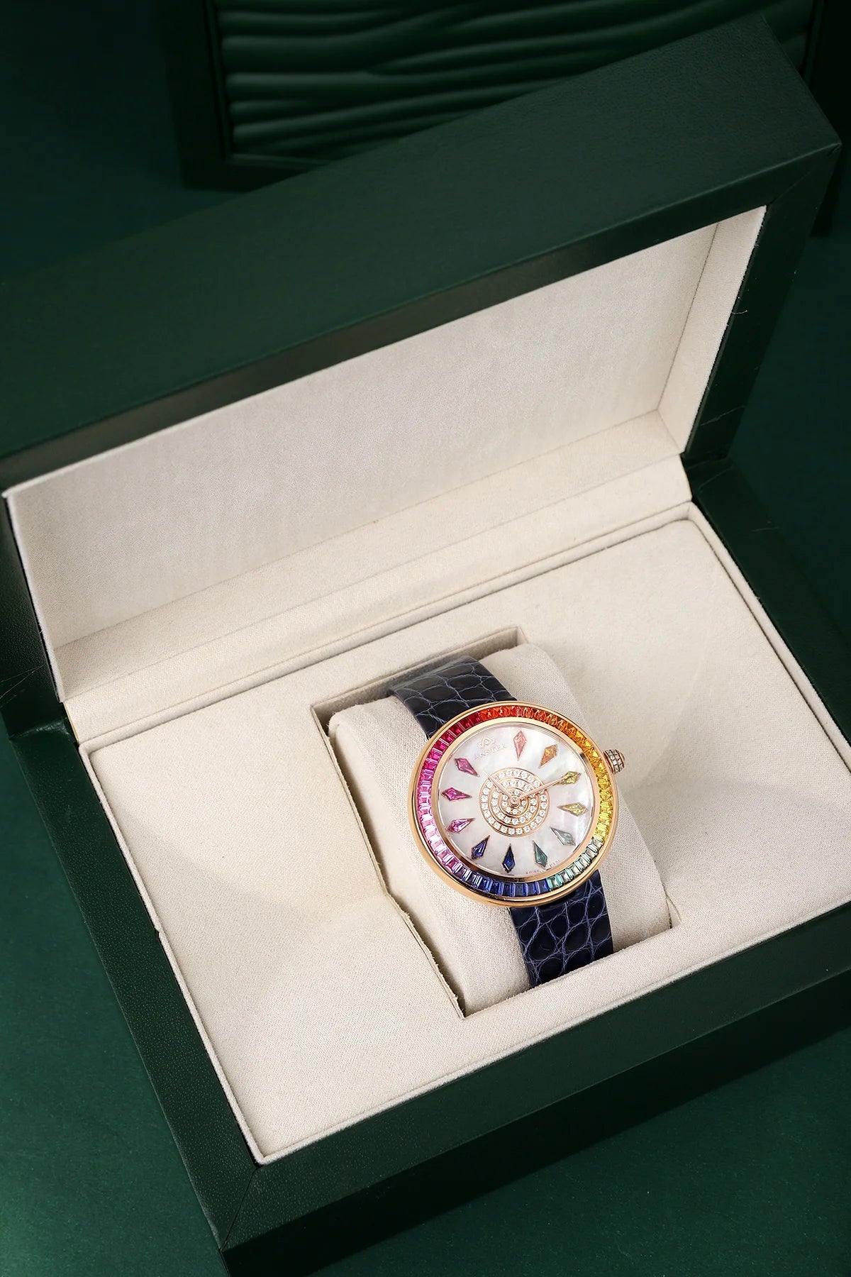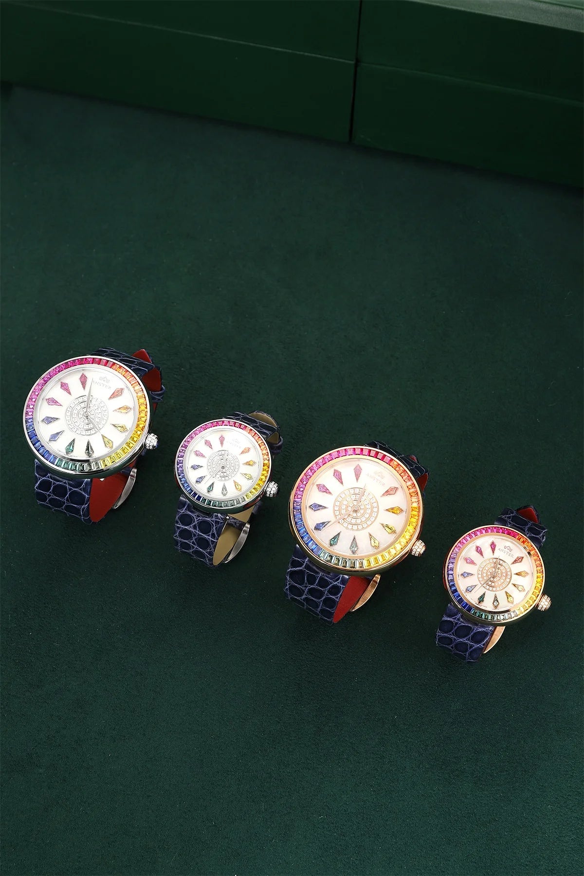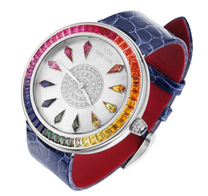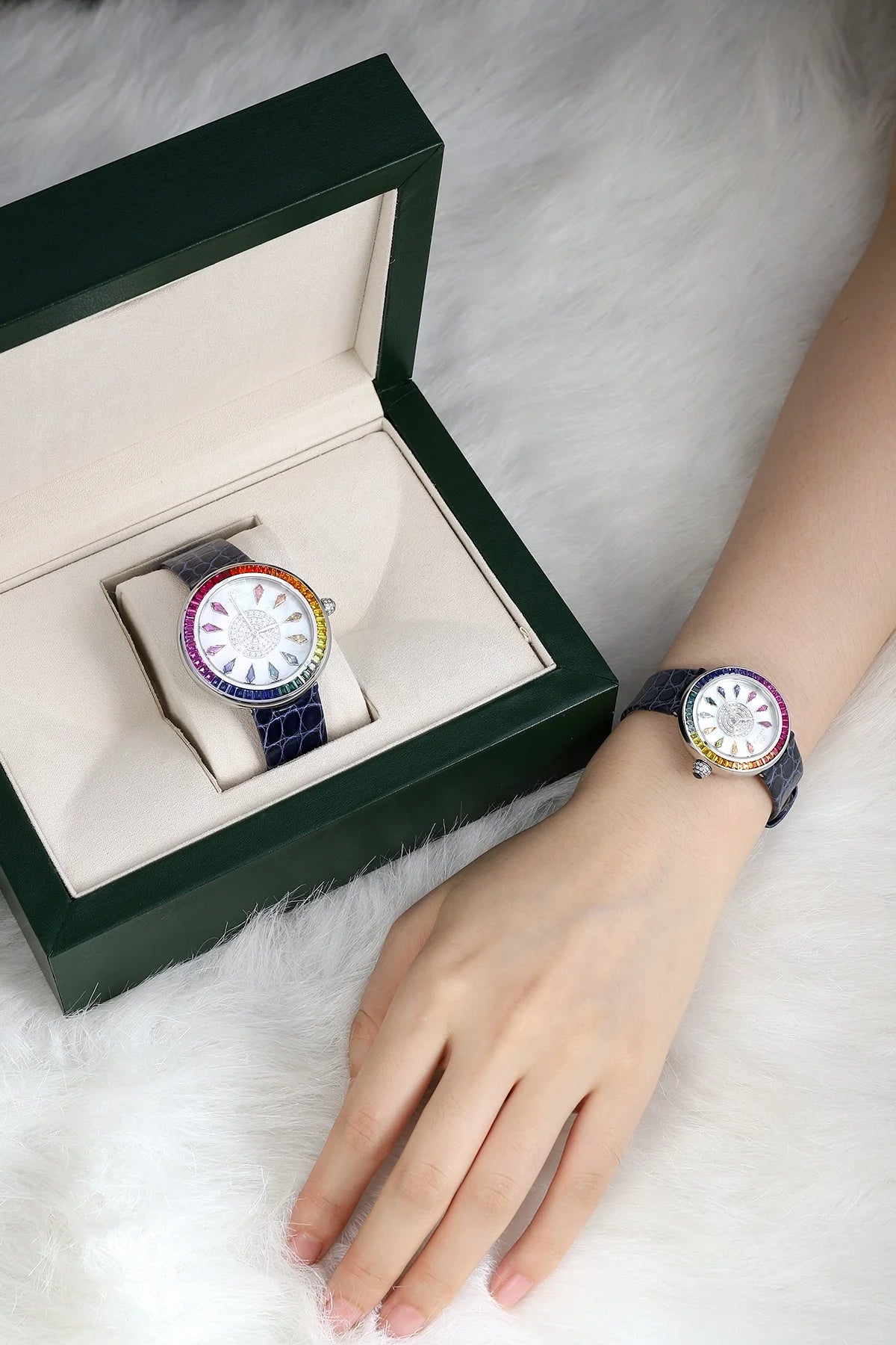 ANSTER Couple Watch Stainless Steel Quartz Movement Rainbow Moissanite Diamond Gifts for Lovers Valentine's Day Charm Watches
