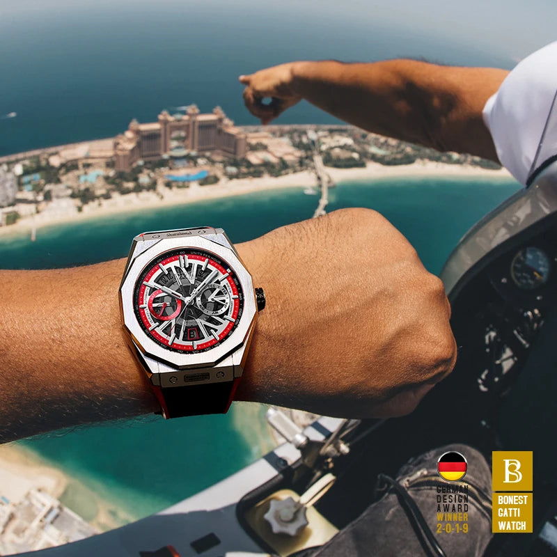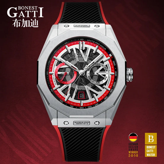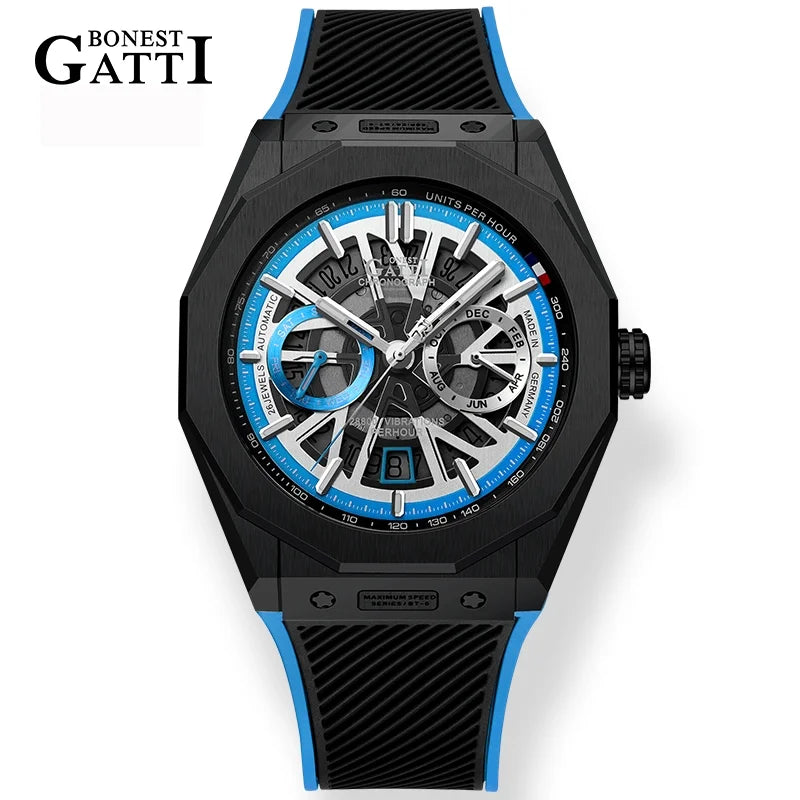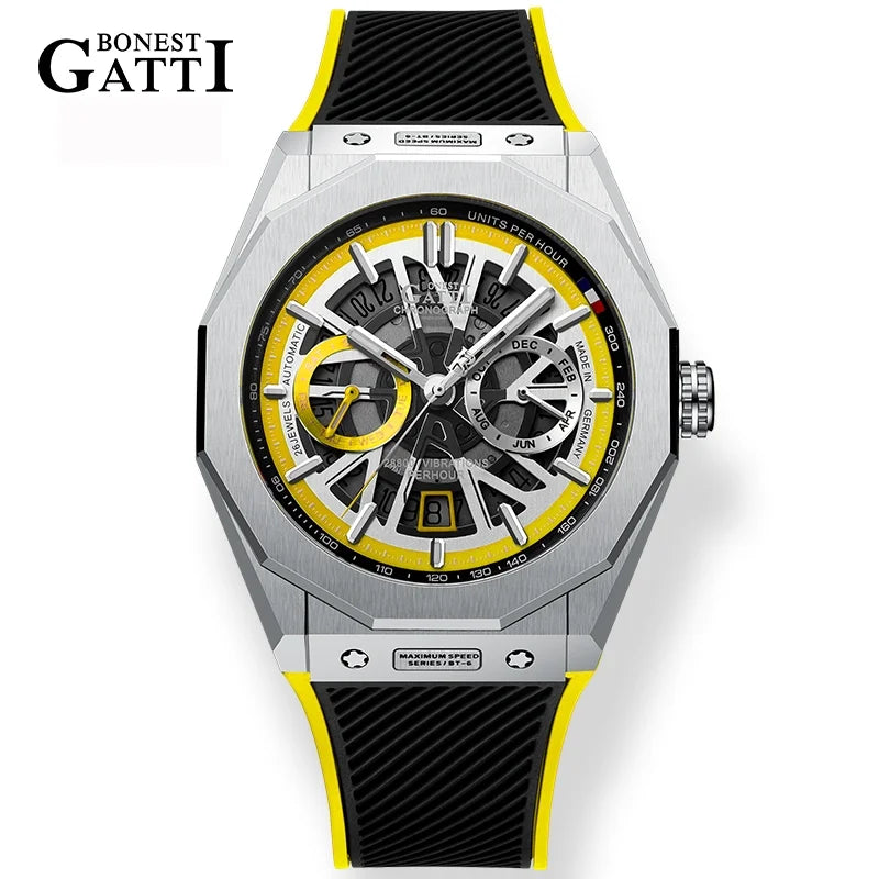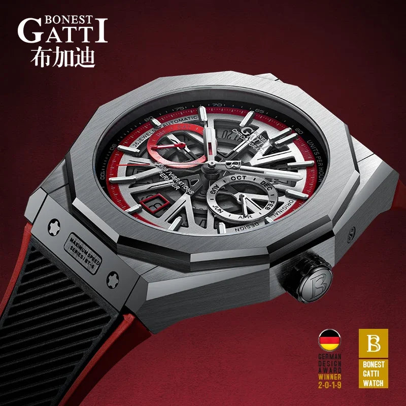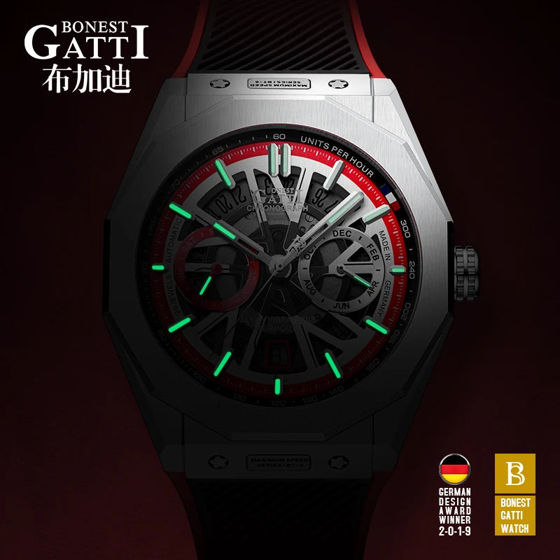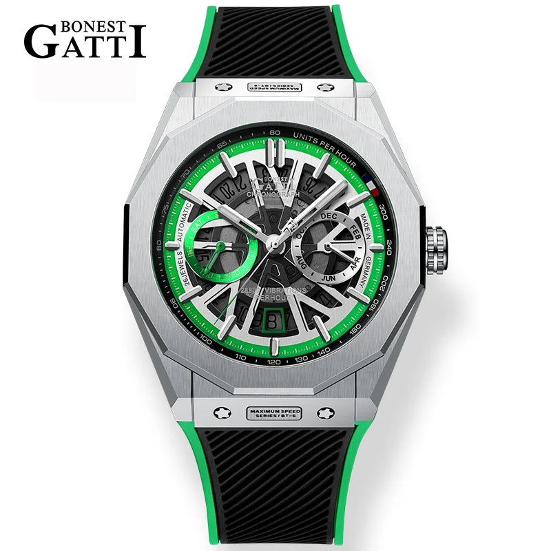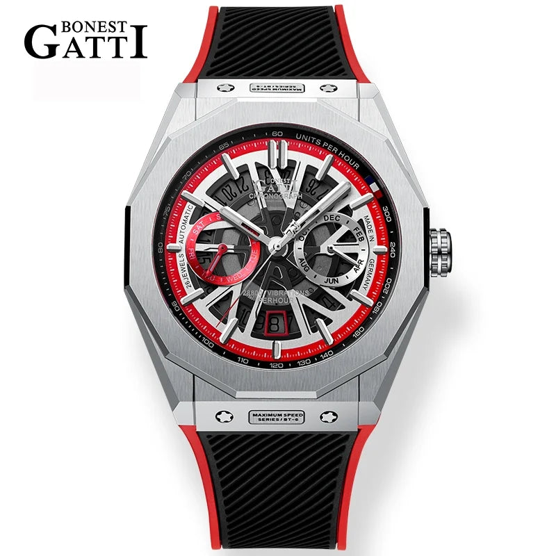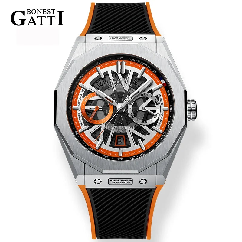 Bonest Gatti Automatic Winding Sapphire Watch King's Speed High Quality Stainless Steel Mechanical Watch for Men