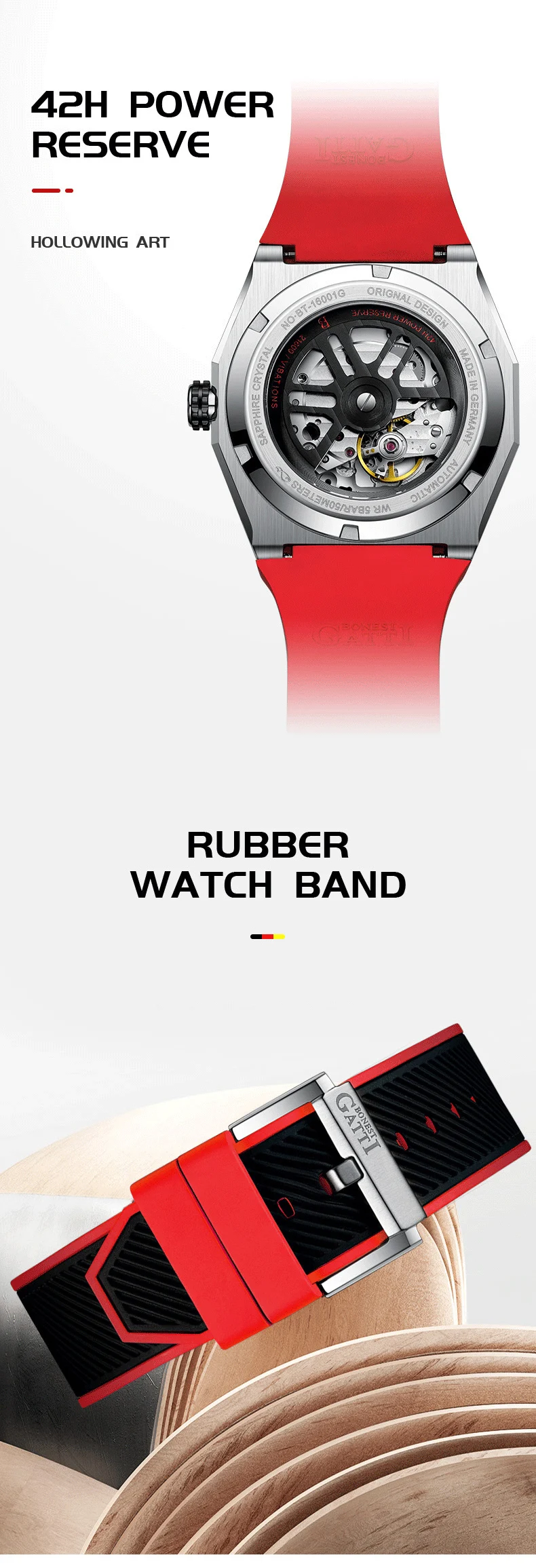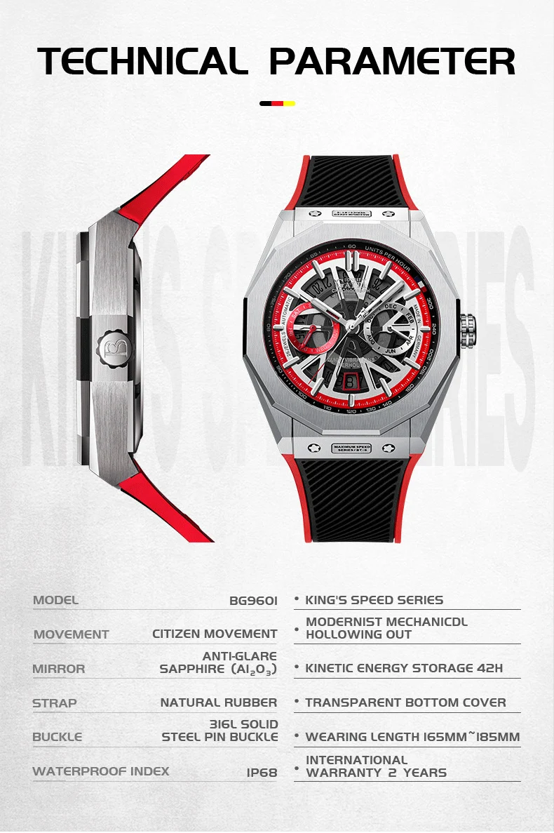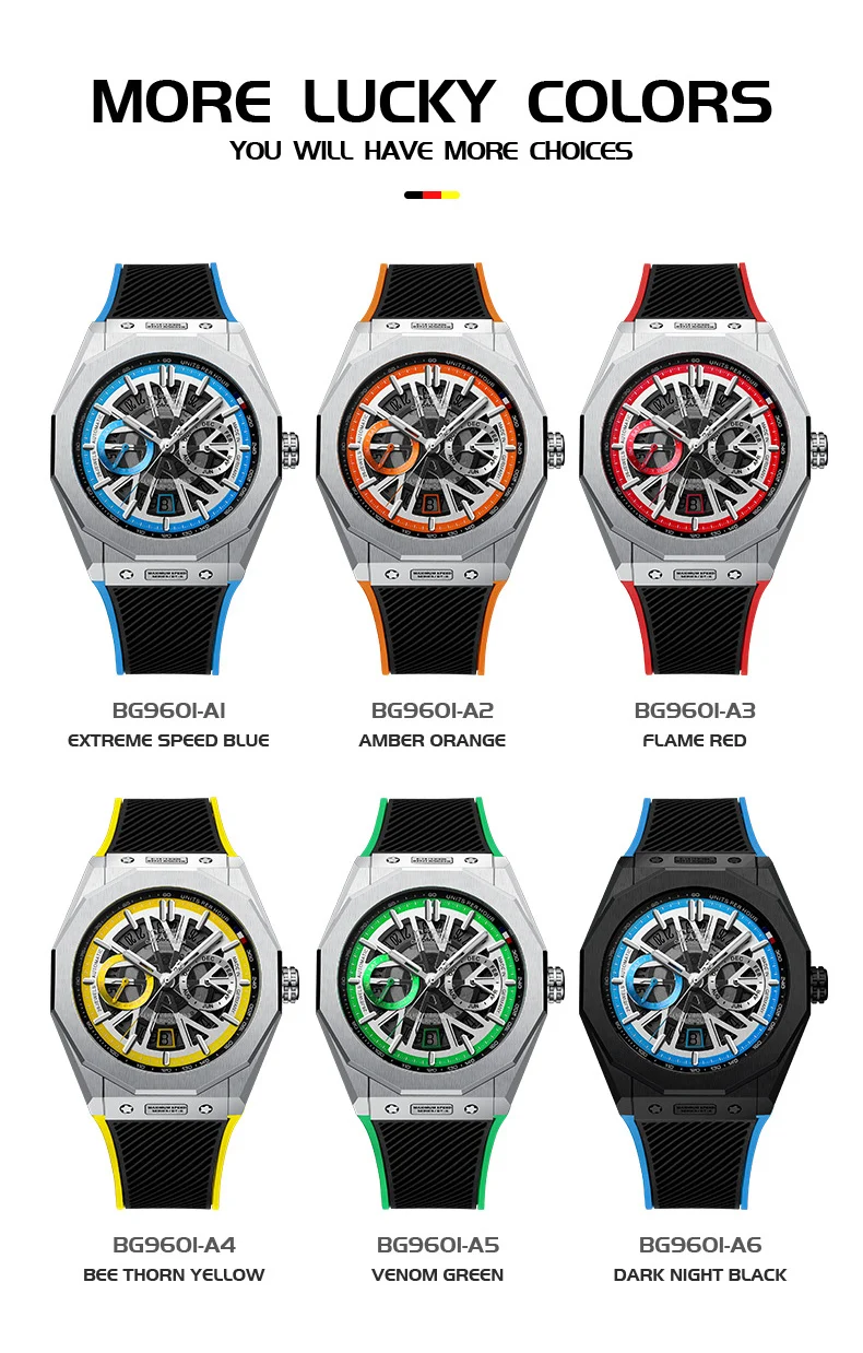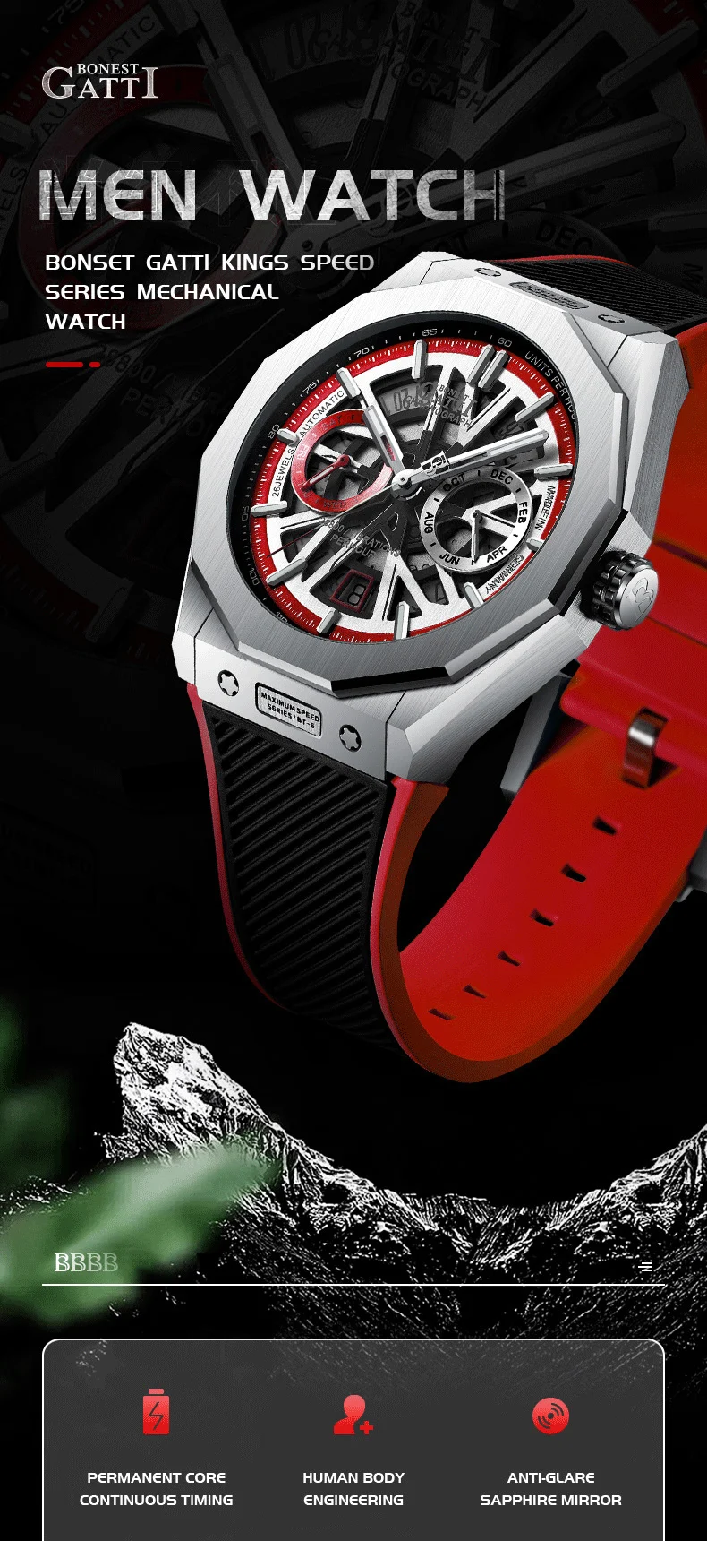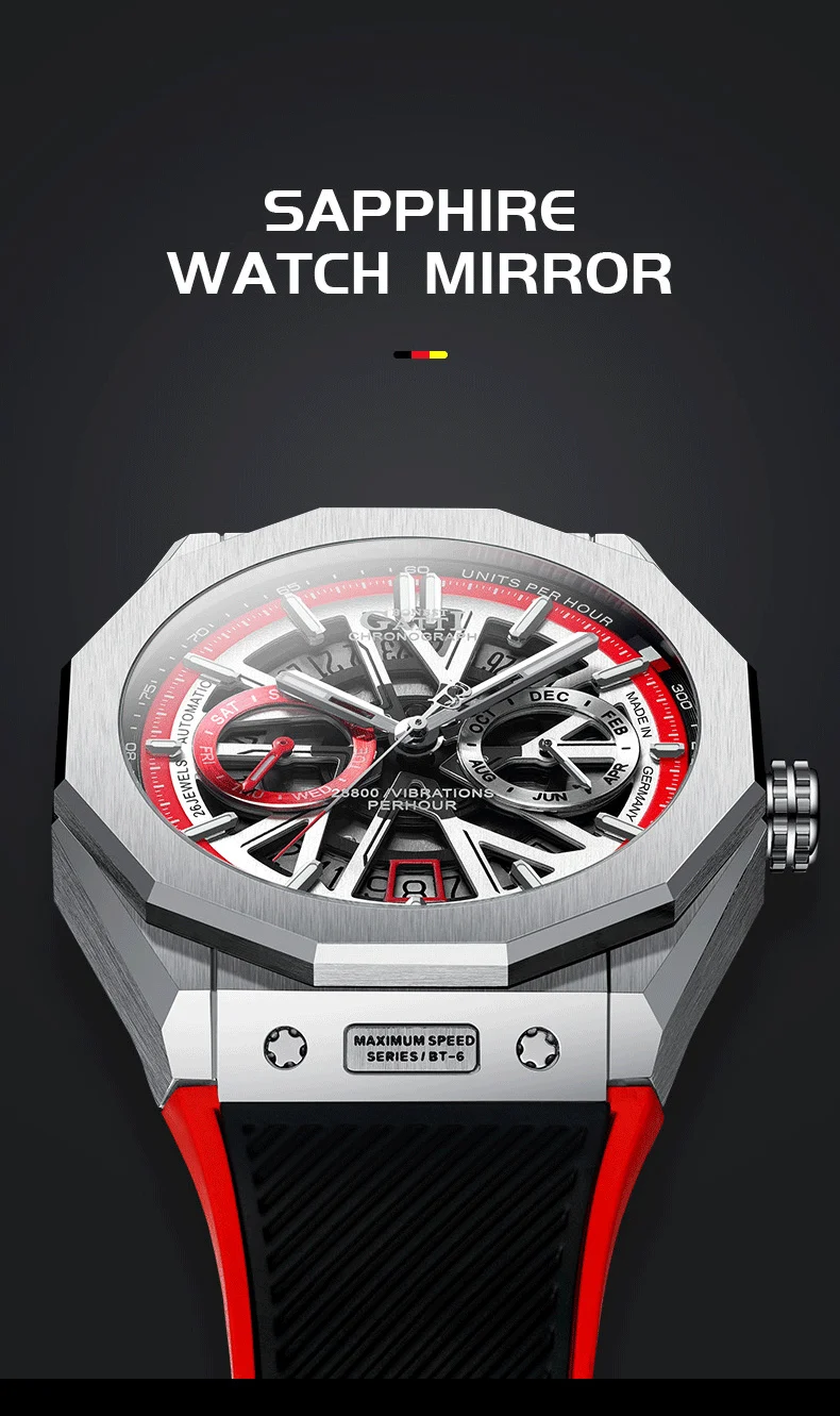 Bonest Gatti Automatic Winding Sapphire Watch King's Speed High Quality Stainless Steel Mechanical Watch for Men
