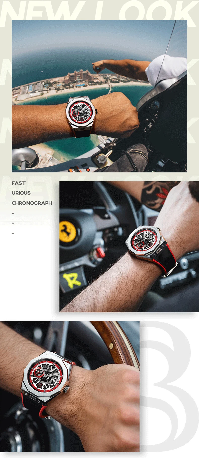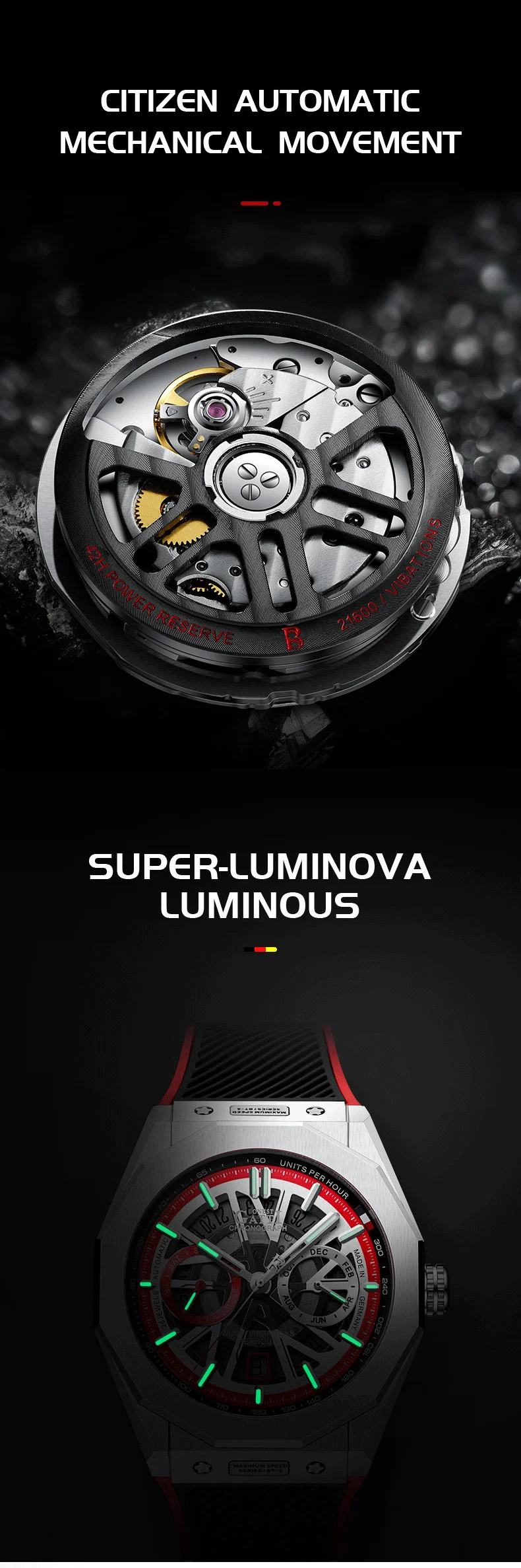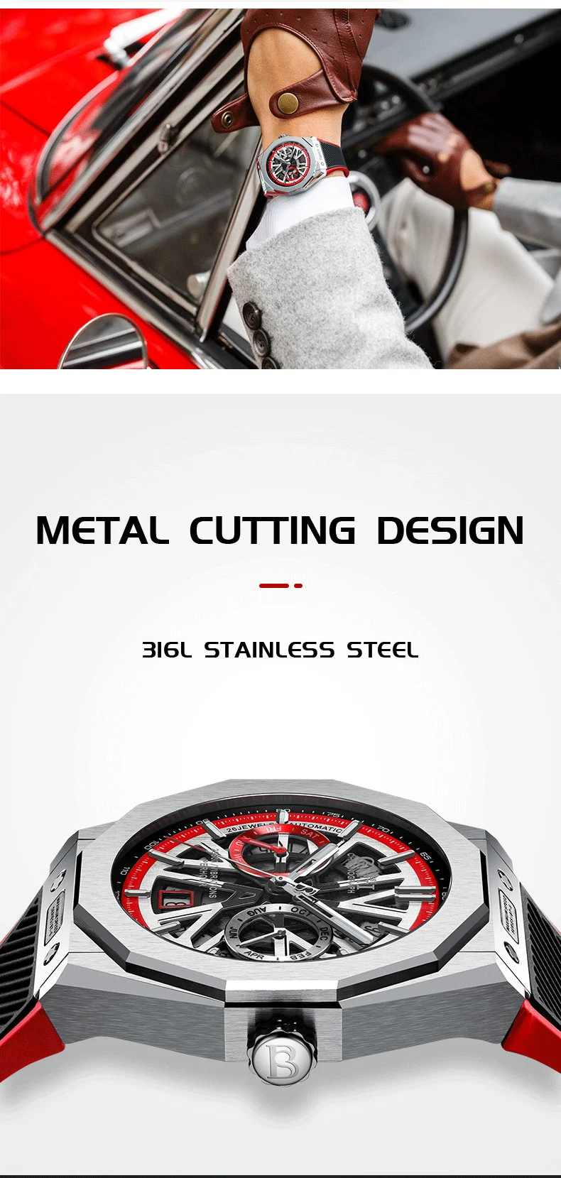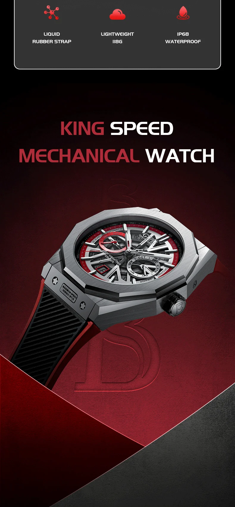 Bonest Gatti Automatic Winding Sapphire Watch King's Speed High Quality Stainless Steel Mechanical Watch for Men