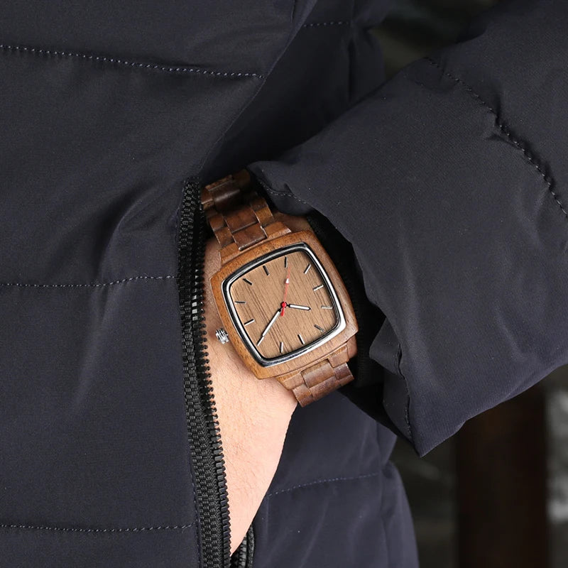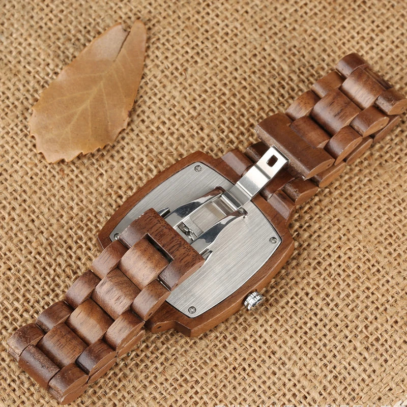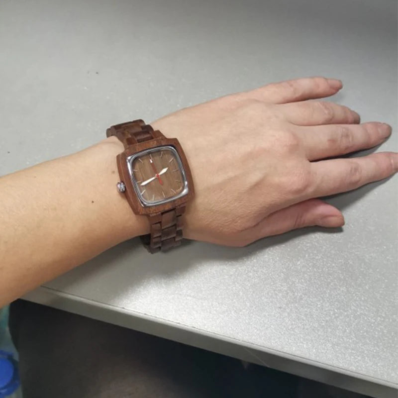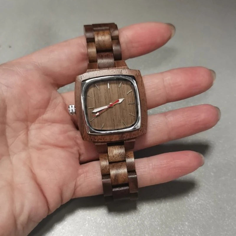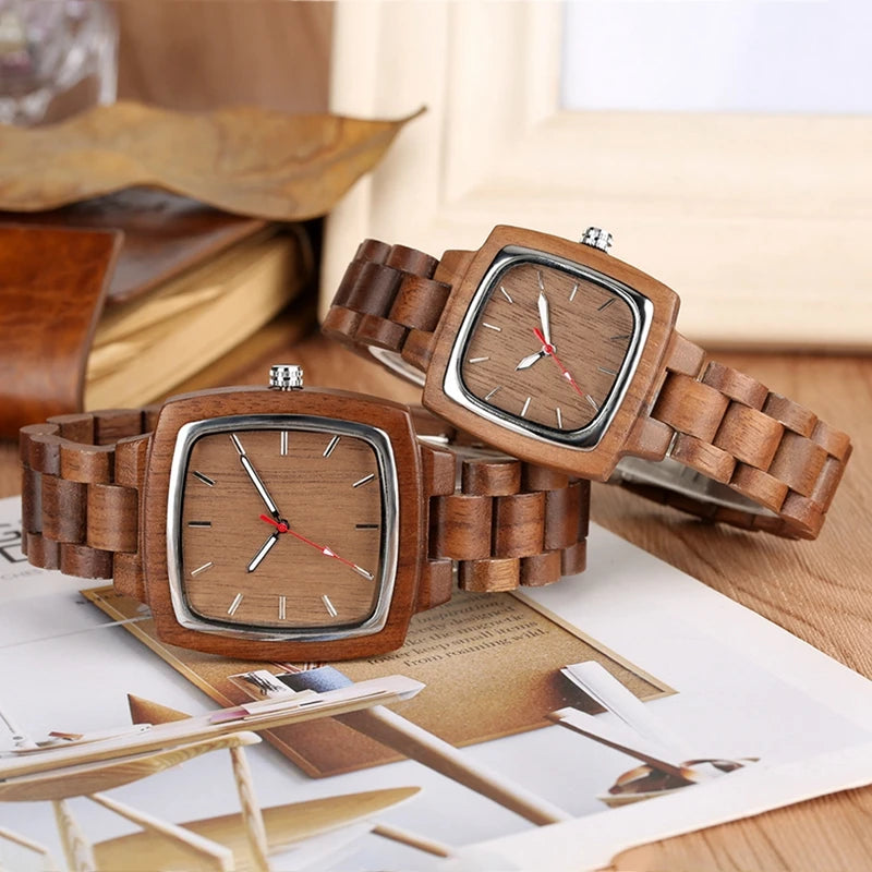 Couple Square Wood Watch Lover Bracelet Wrist Watches Natural Real Walnut Wood Dial Quartz Wristwatch Reloj De Mujer