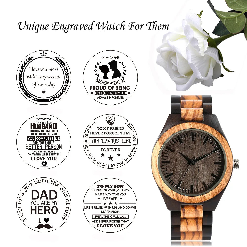 Dropshipping Personalized Couple Watch Mens Women Wristwatch Family Birthday Gift for SON DAD Engraving Logo Wood Quartz Watches