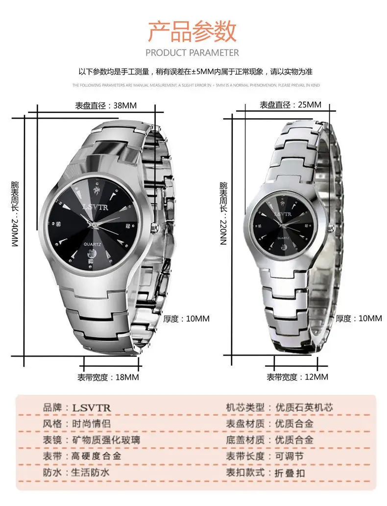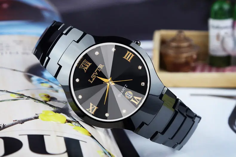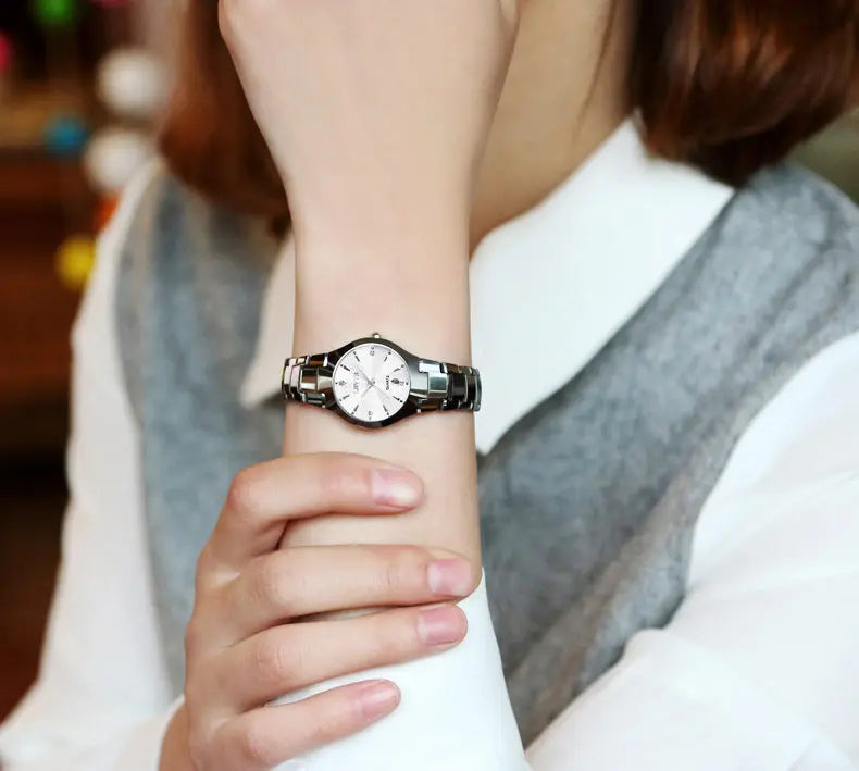 Fashion Design Watch Tungsten Steel Men's Quartz Calendar Watch Women's Couple Student Watch