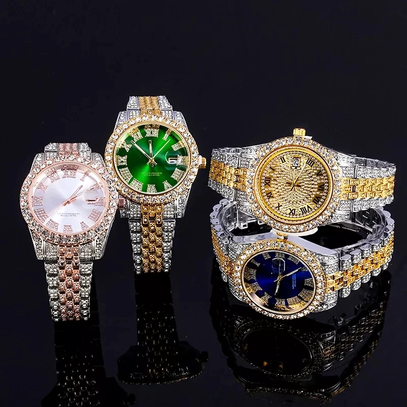 Hand Diamond Mans Watch Ladies Women Luxury Wrist Men Quartz Watches Gold Stainless Steel Glass Custom Watch SEIKO Custom Logo