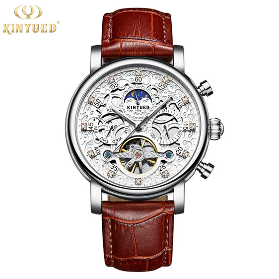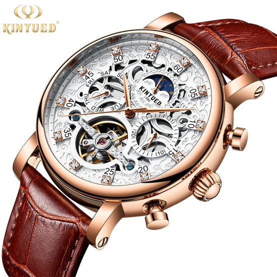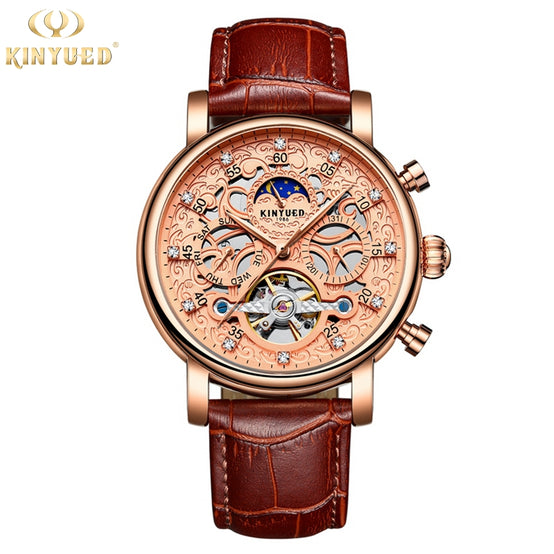 KINYUED J026 Men Automatic Mechanical Watches Leather Strap Fashion High Quality Watch for Men