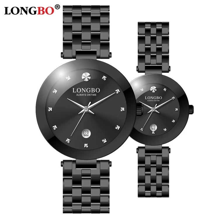 LONGBO 80582 Couple Quartz Watch Classic Stainless Steel With Auto Date Couple Watch
