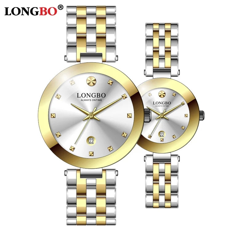 LONGBO 80582 Luxury Couple Quartz Watches New Design Fashion Custom Watch Stainless Steel Wristwatch Gold Women Men