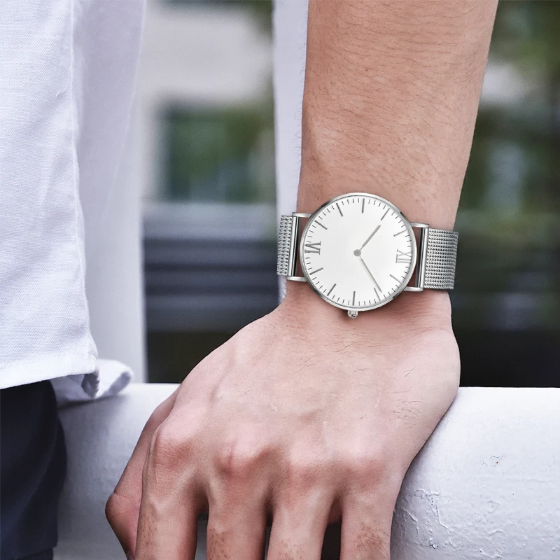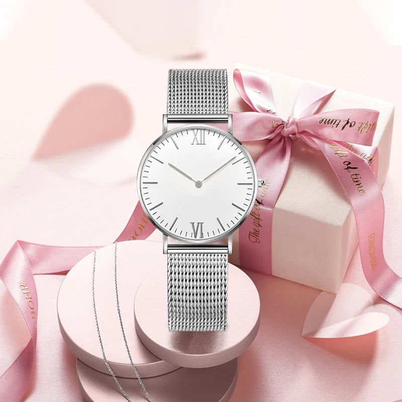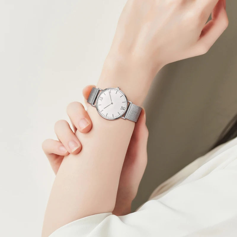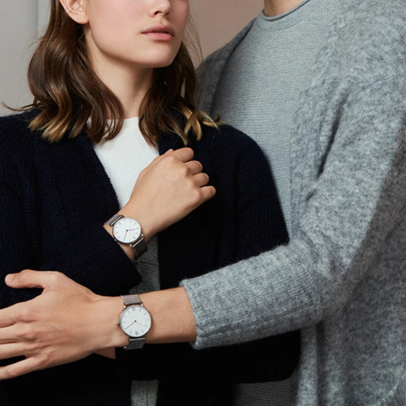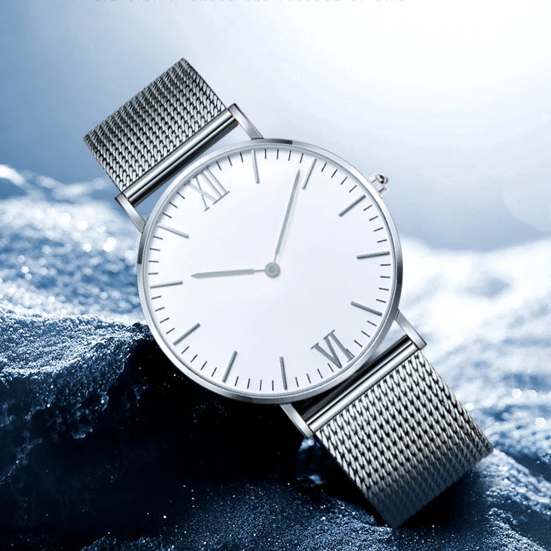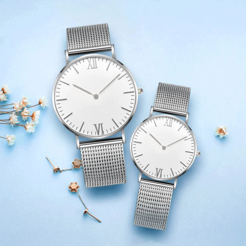 Minimalist New Design Couple Watch Men Women Stainless Steel Strap Mesh OEM Crystal Unisex Modern Round 3ATM Quartz Watch