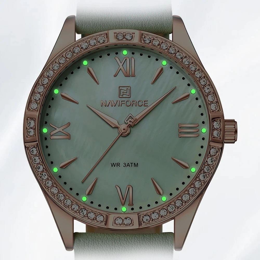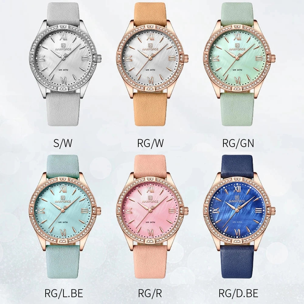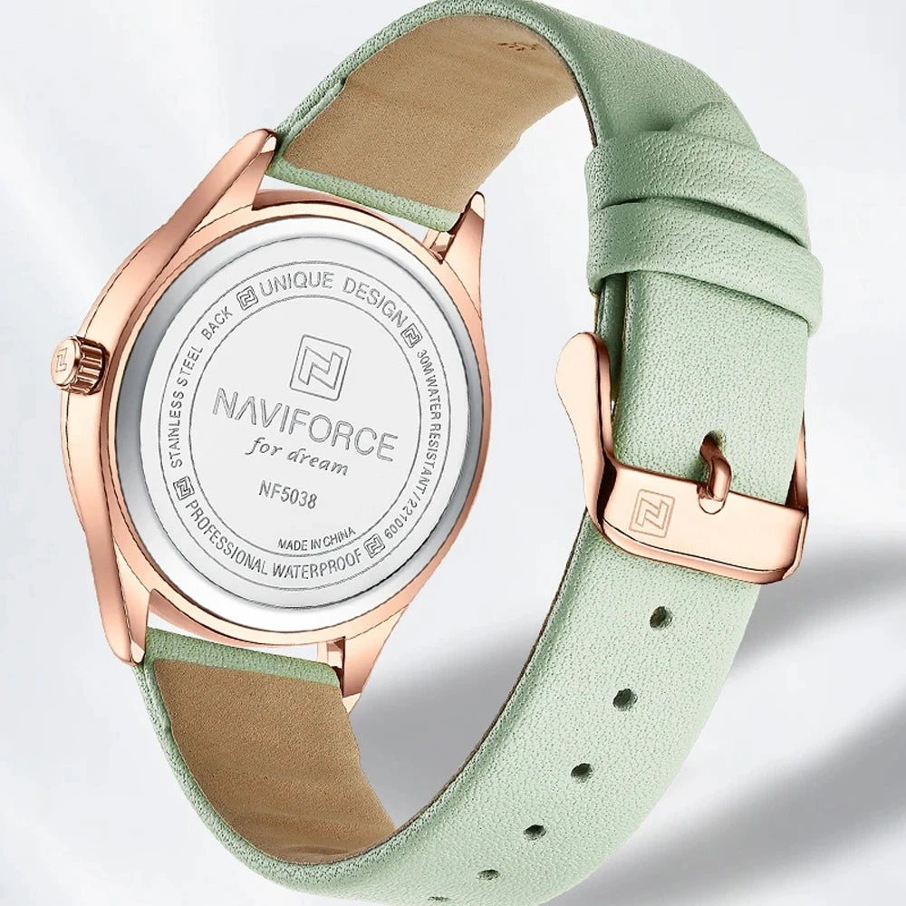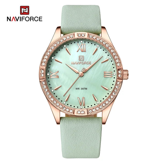 NAVIFORCE Women Watches Fashion Elegant Ladies Quartz Watch Waterproof Leather Bracelet Wristwatches Girlfriend Gift 2023
