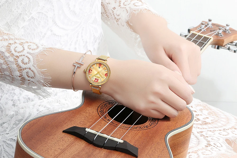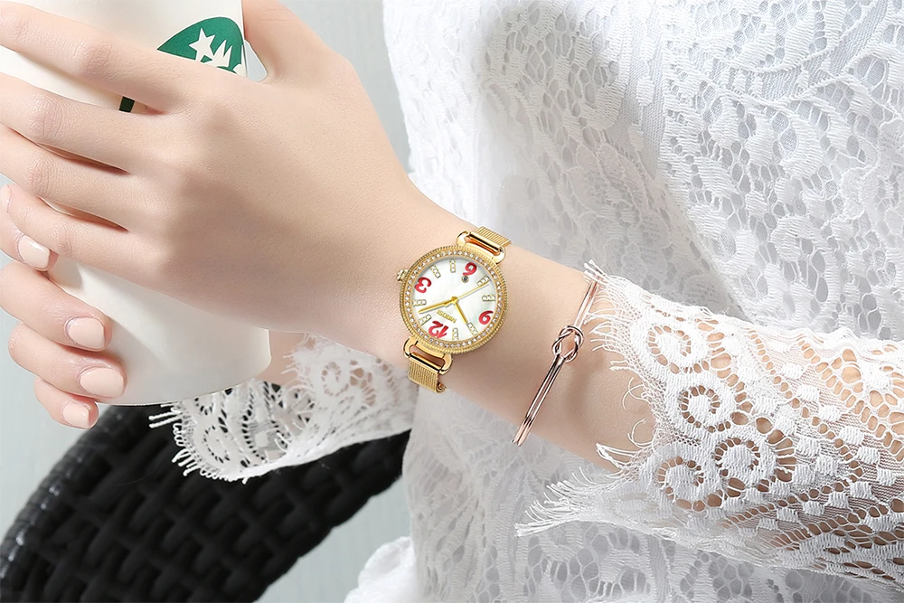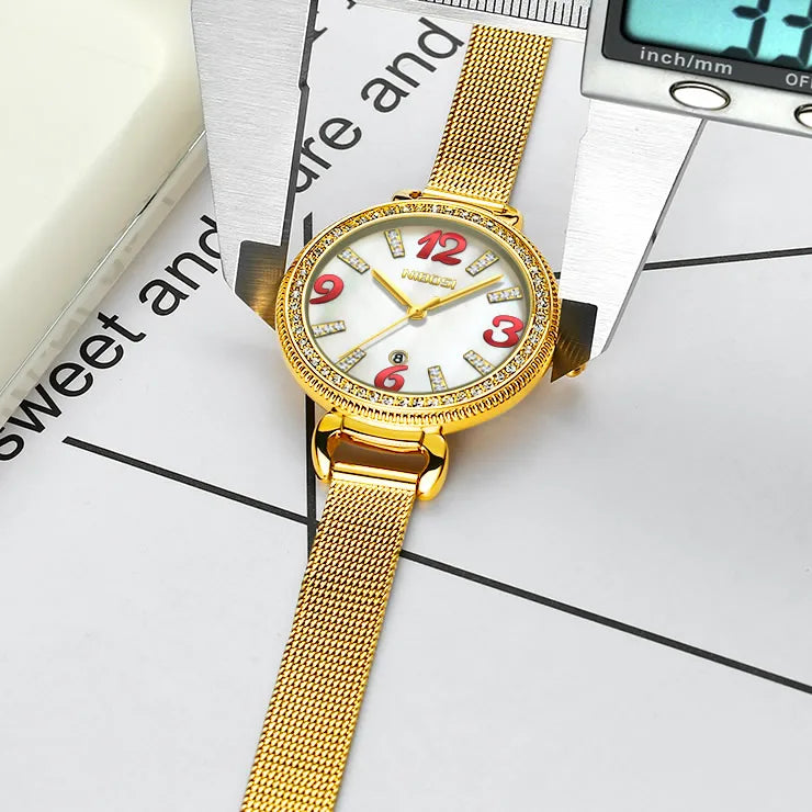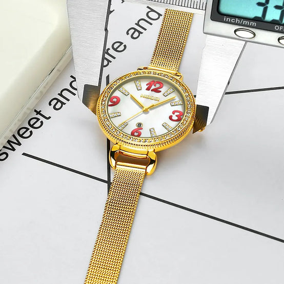 Ladies Fashion Gold Alloy Bracelet Quartz Watches Casual Lady Waterproof Wristwatch