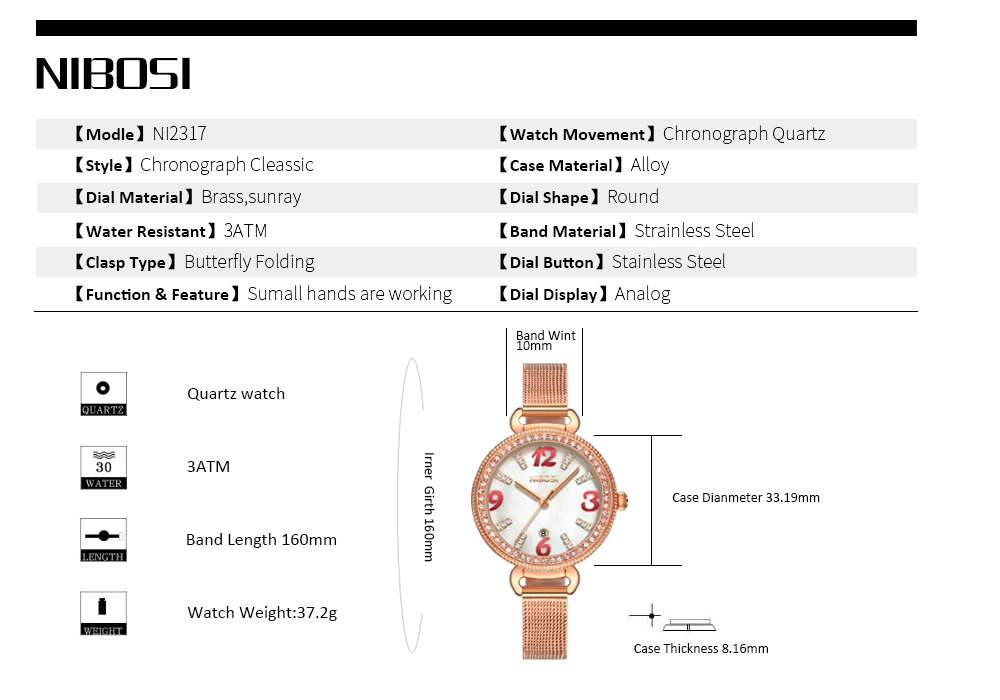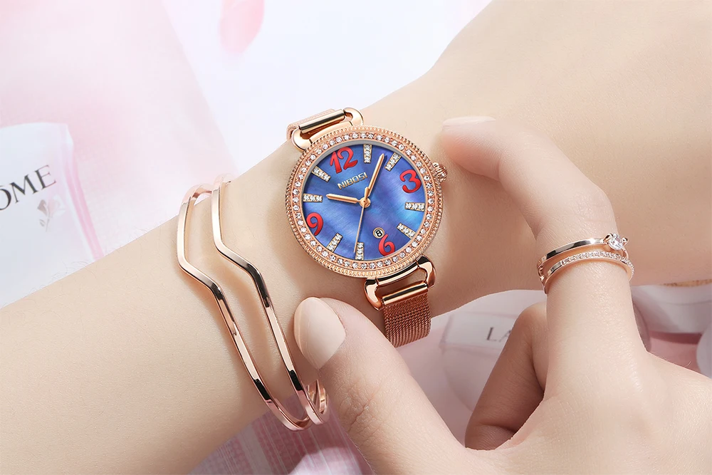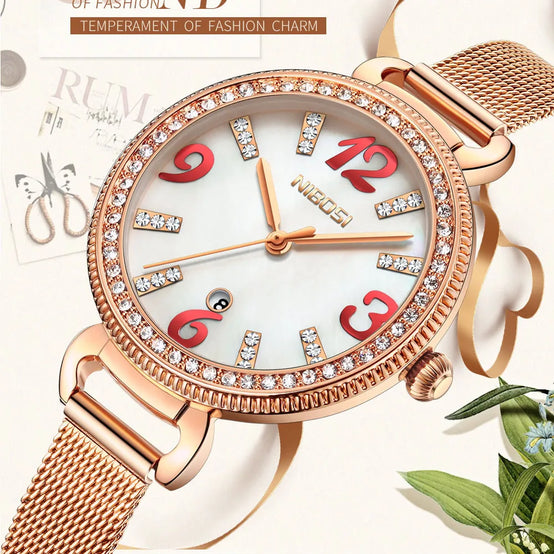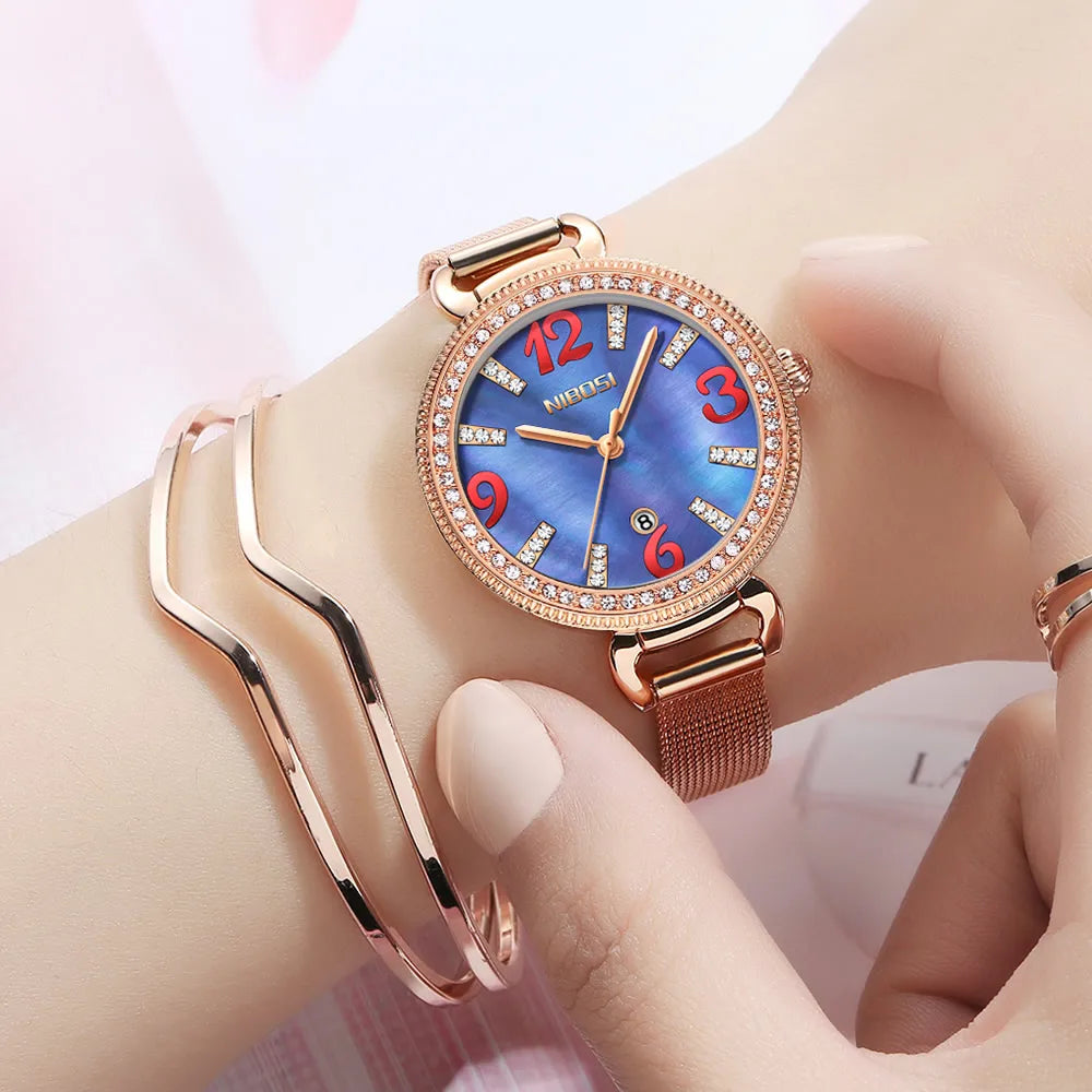 NIBOIS 2317 Diamonds Women Watch Fashion Waterproof Quartz Watch Customize Logo Ladies Quartz Wrist Watch