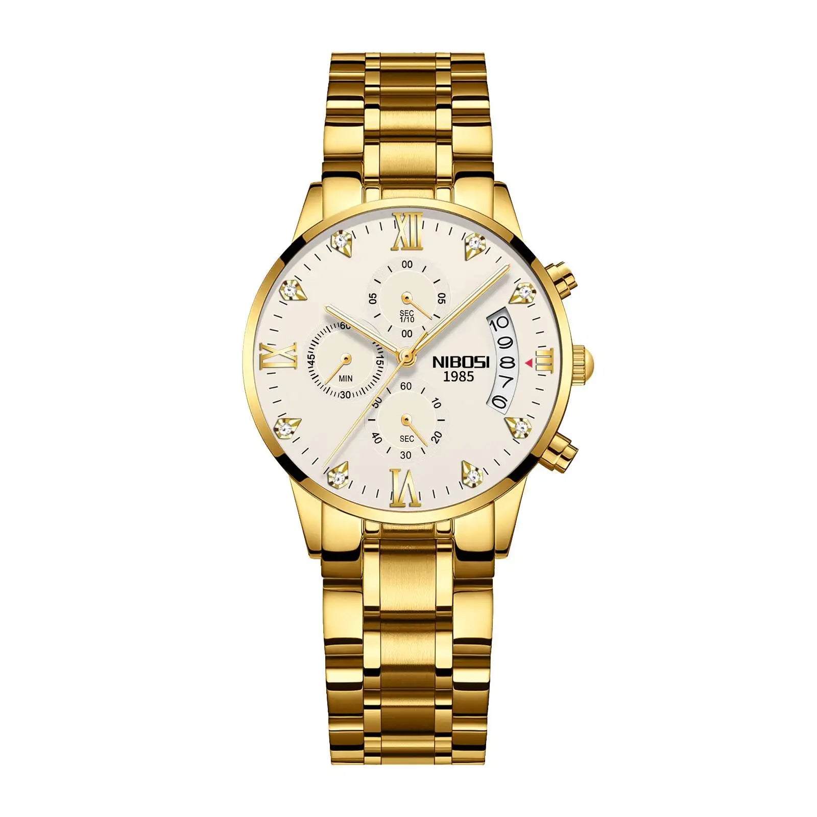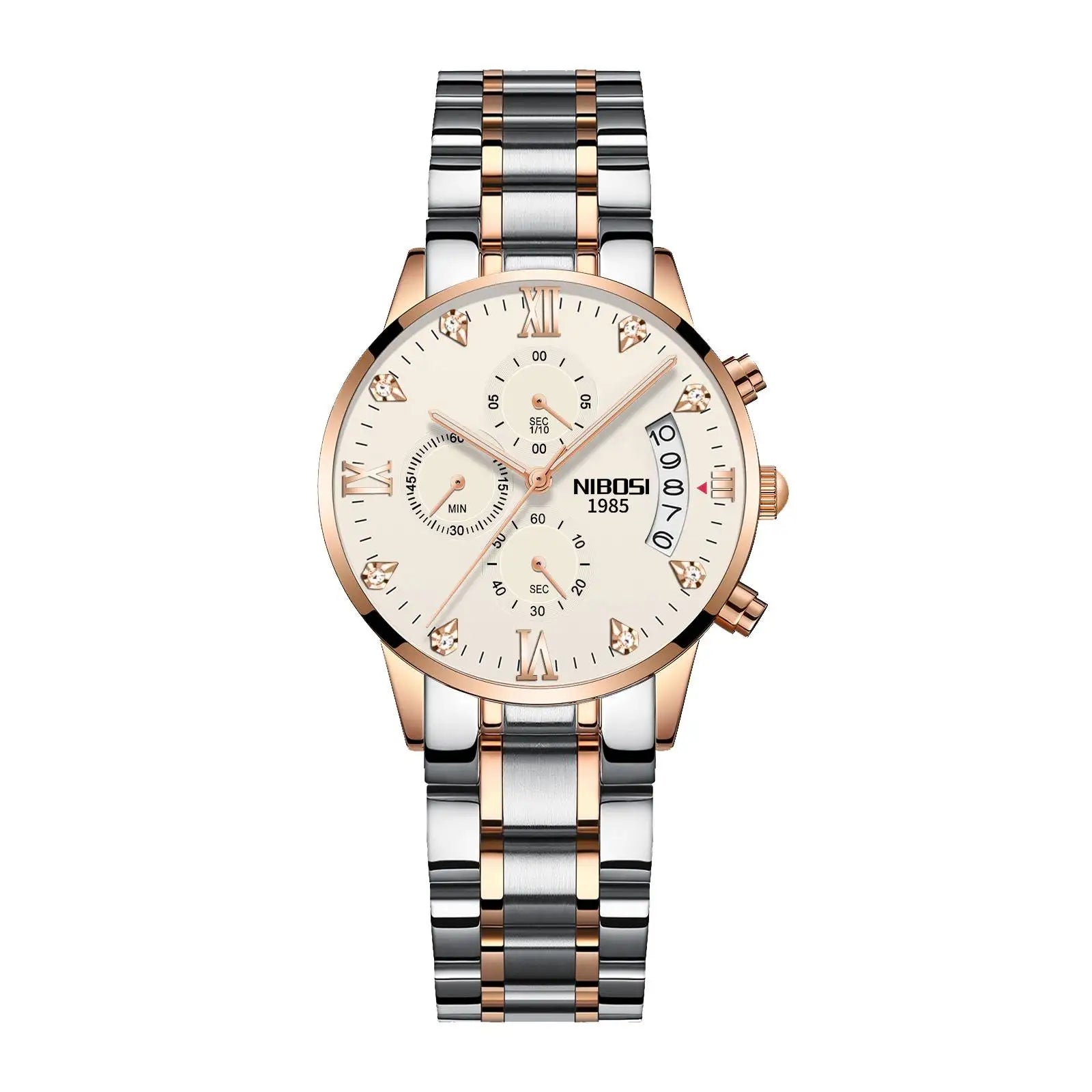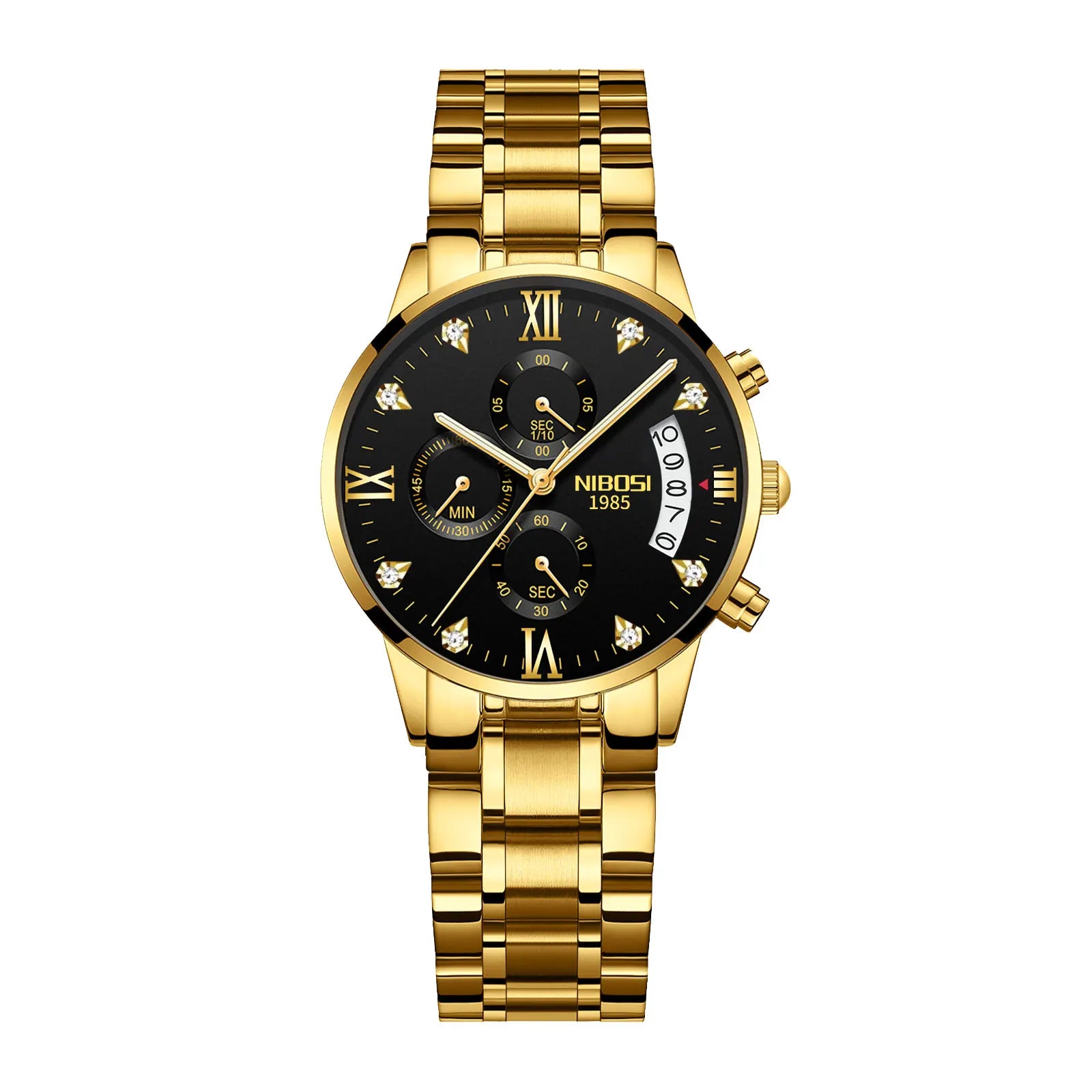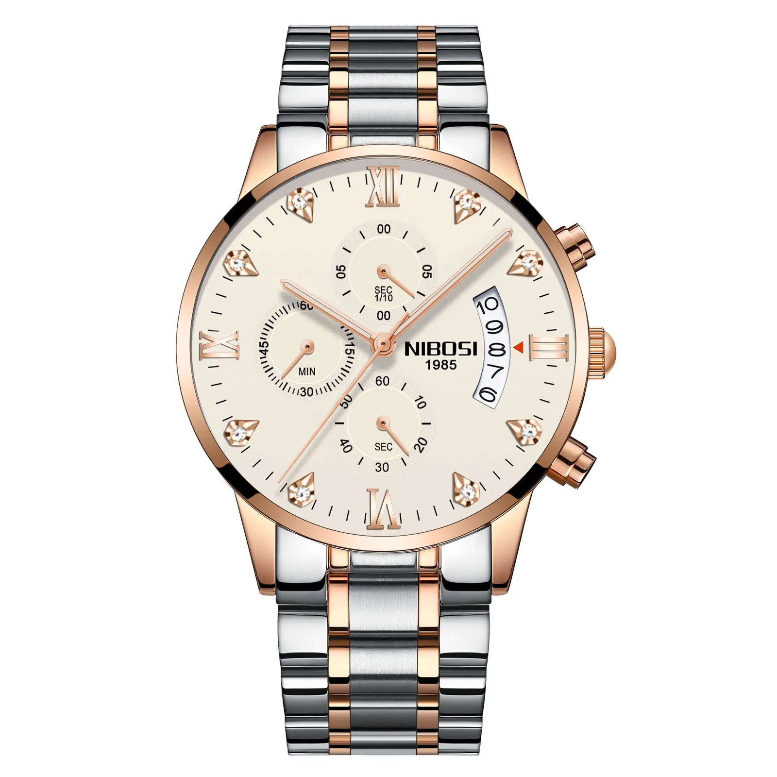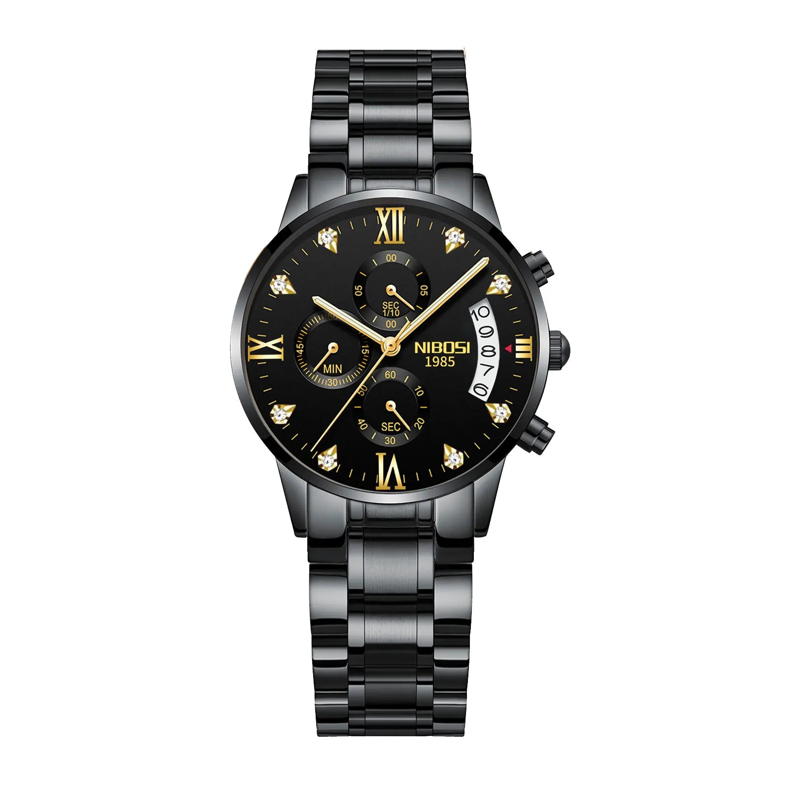 NIBOSI 2309-2 Couple Watches with Diamonds Fashion Men Quartz Watch Solid Stainless Steel Band Women Wristwatches