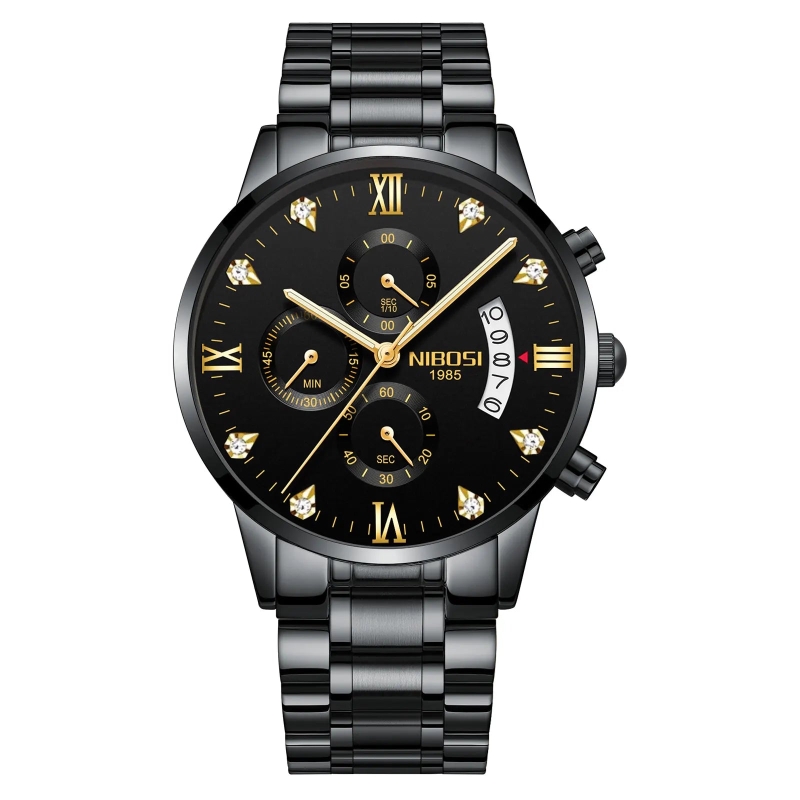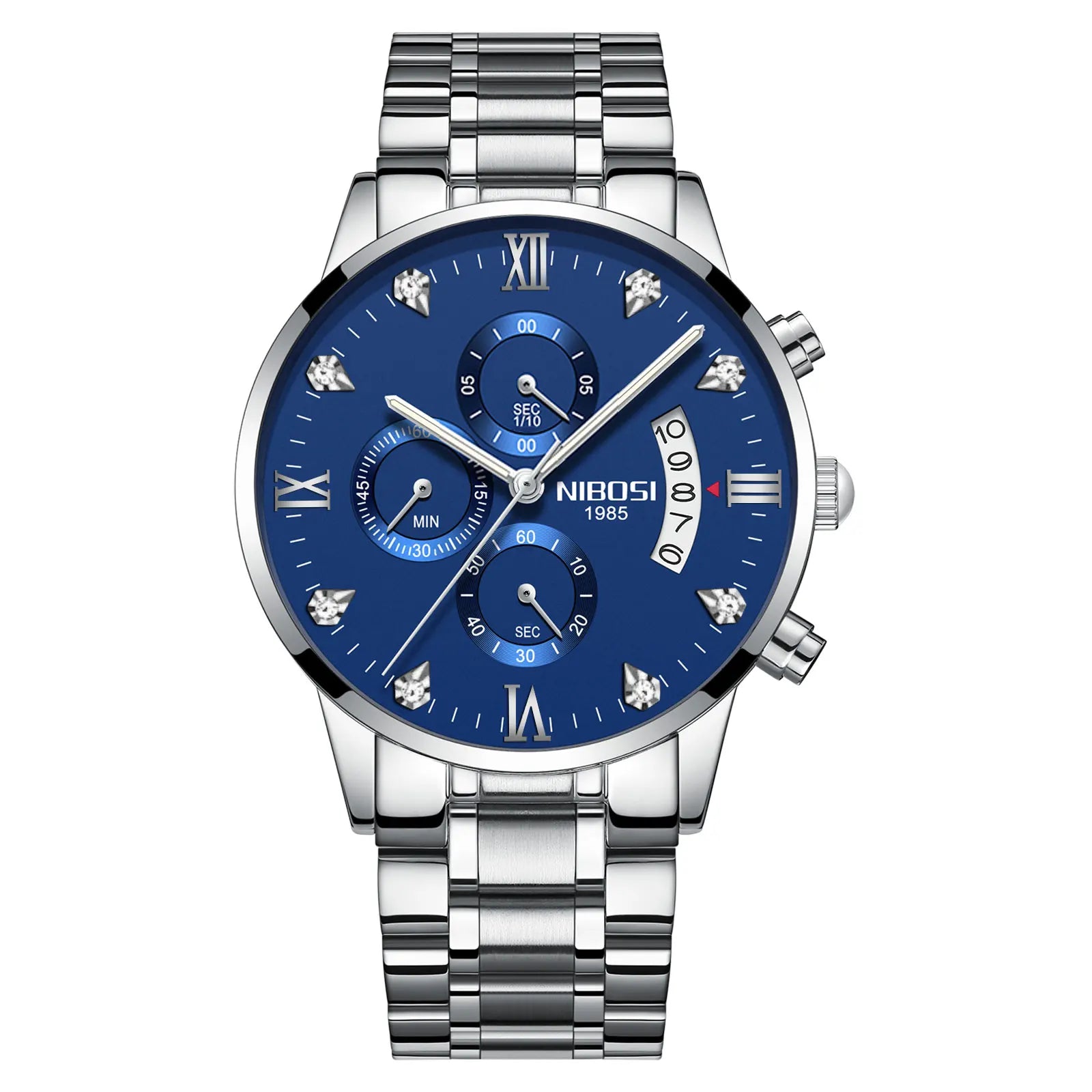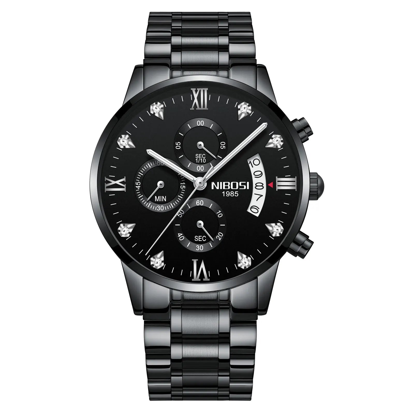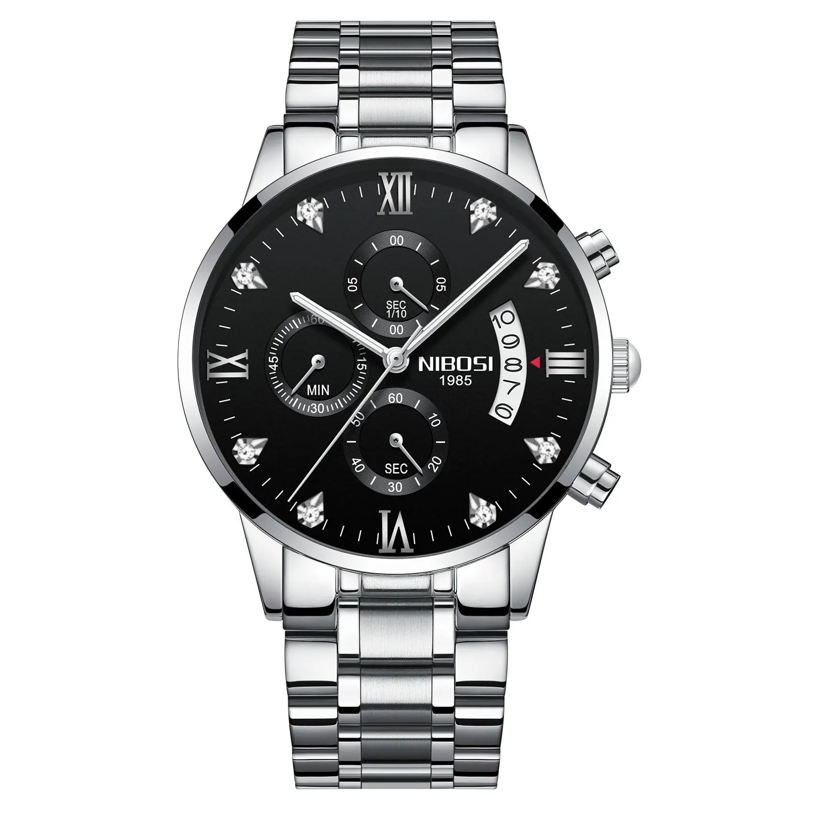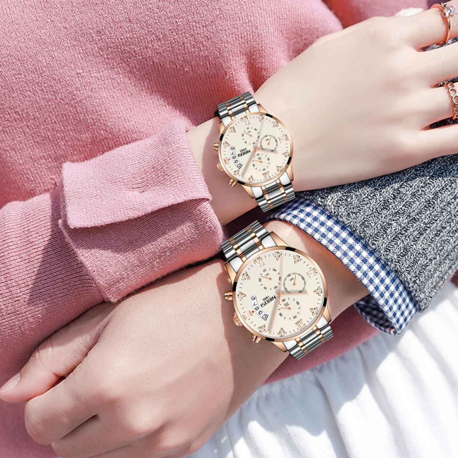 NIBOSI 2309-2 Couple Watches with Diamonds Fashion Men Quartz Watch Solid Stainless Steel Band Women Wristwatches