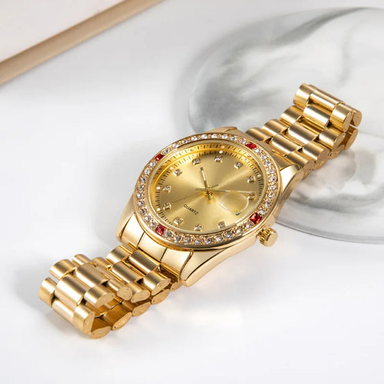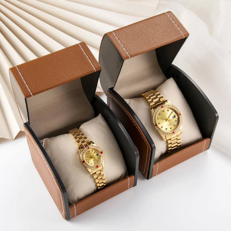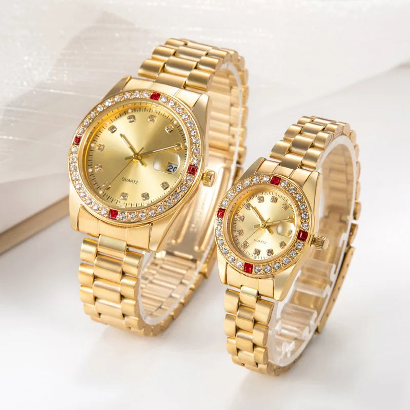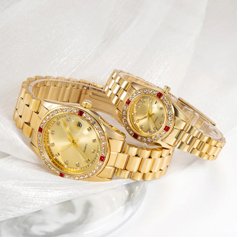 Personality Jewelry Valentine Watch Gift Set Luxury Ruby diamond Lovers Wristwatches Fashion Couple Watches