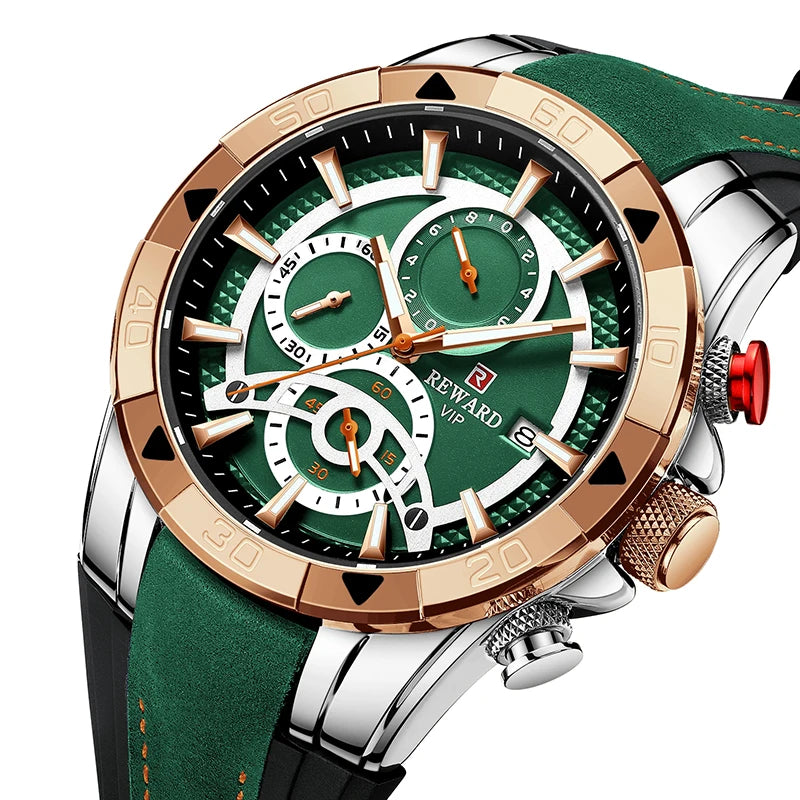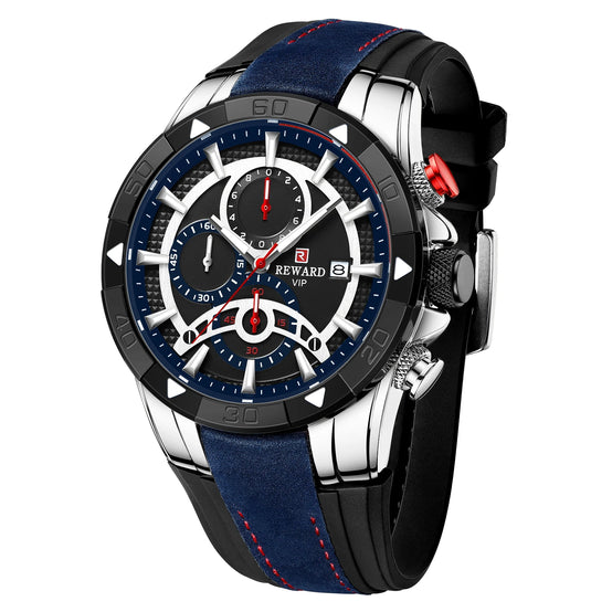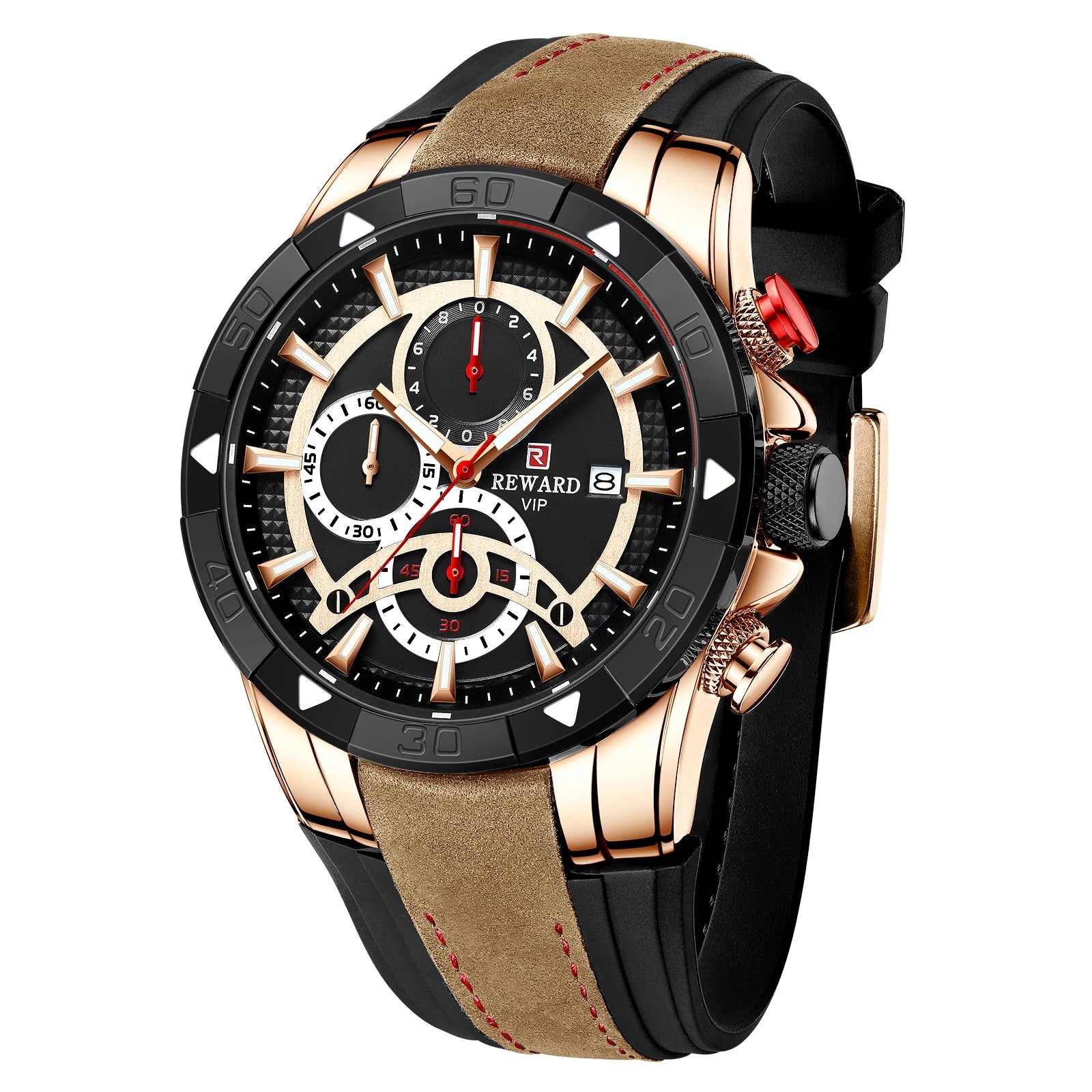 Reward New Hot Sale Male Watches Fashion Leather Silicone Strap Luminous Hands Chronograph Sports Wristwatch Watch For Men